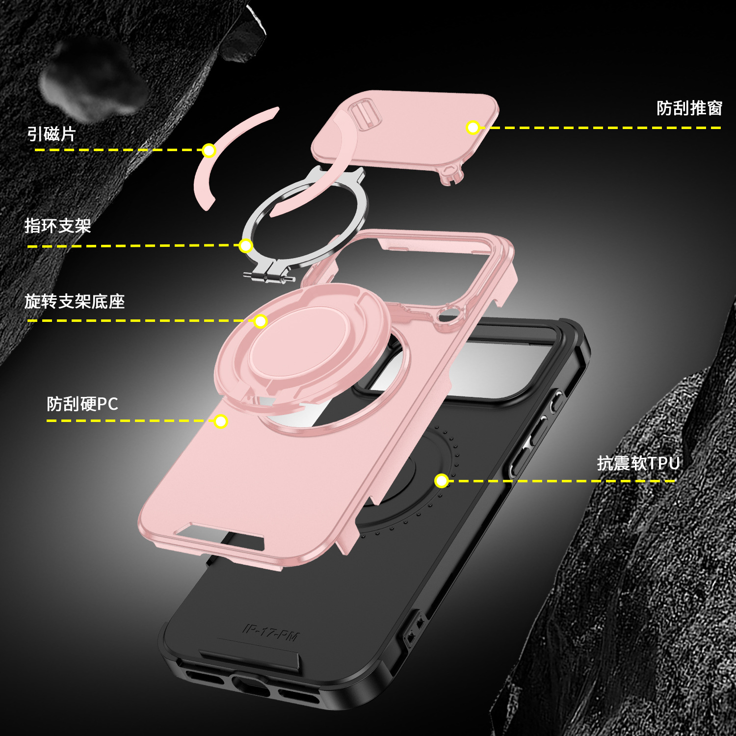 Apple iphone17promax Lingke 휴대폰 케이스에 적합 금속 360 스탠드 16pm 렌즈 플립 윈도우
