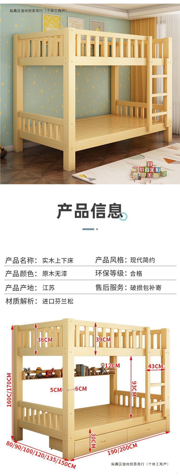 • 모든 원목 이층 침대 + 이중 서랍 [국가 표준 두꺼운 버전]