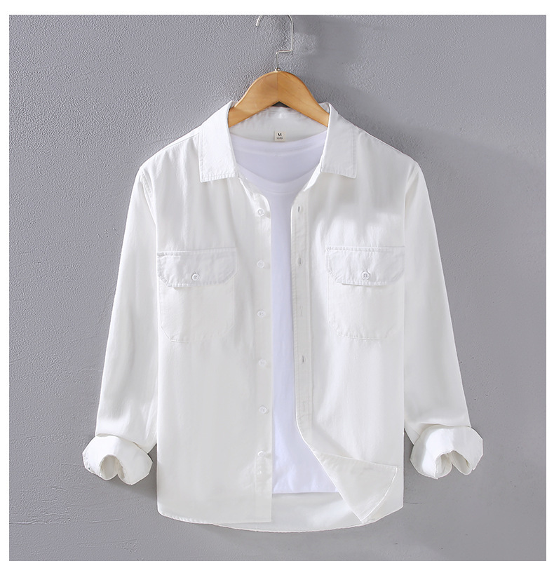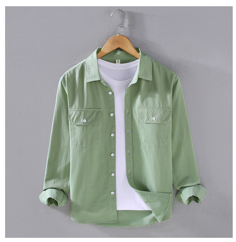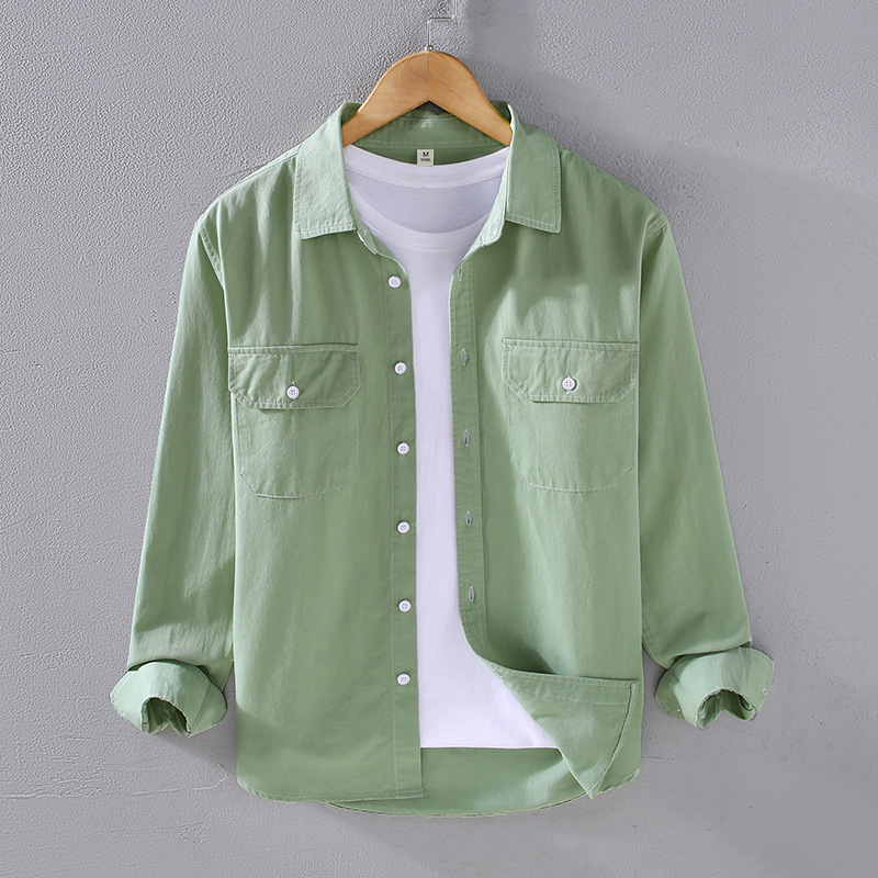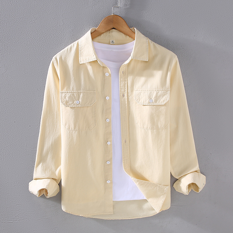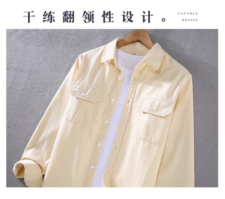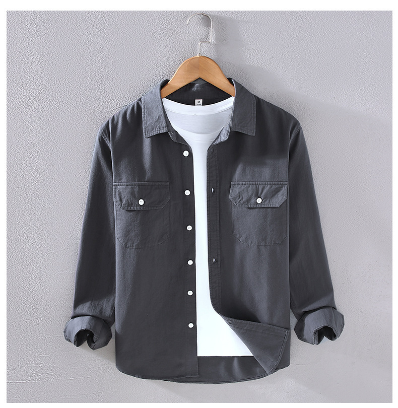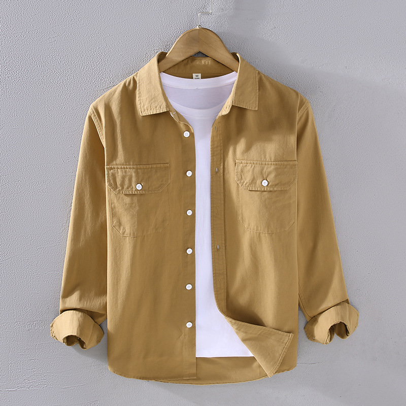 2305 트렌디 아메리칸 헤비웨이트 코튼 셔츠 남성용 봄, 가을 능직 질감 긴팔 셔츠 워크 포켓 인치 셔츠