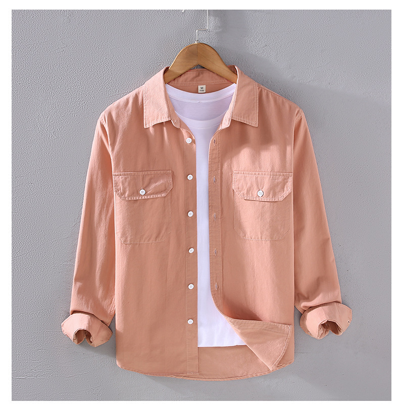 2305 트렌디 아메리칸 헤비웨이트 코튼 셔츠 남성용 봄, 가을 능직 질감 긴팔 셔츠 워크 포켓 인치 셔츠스토어 가기