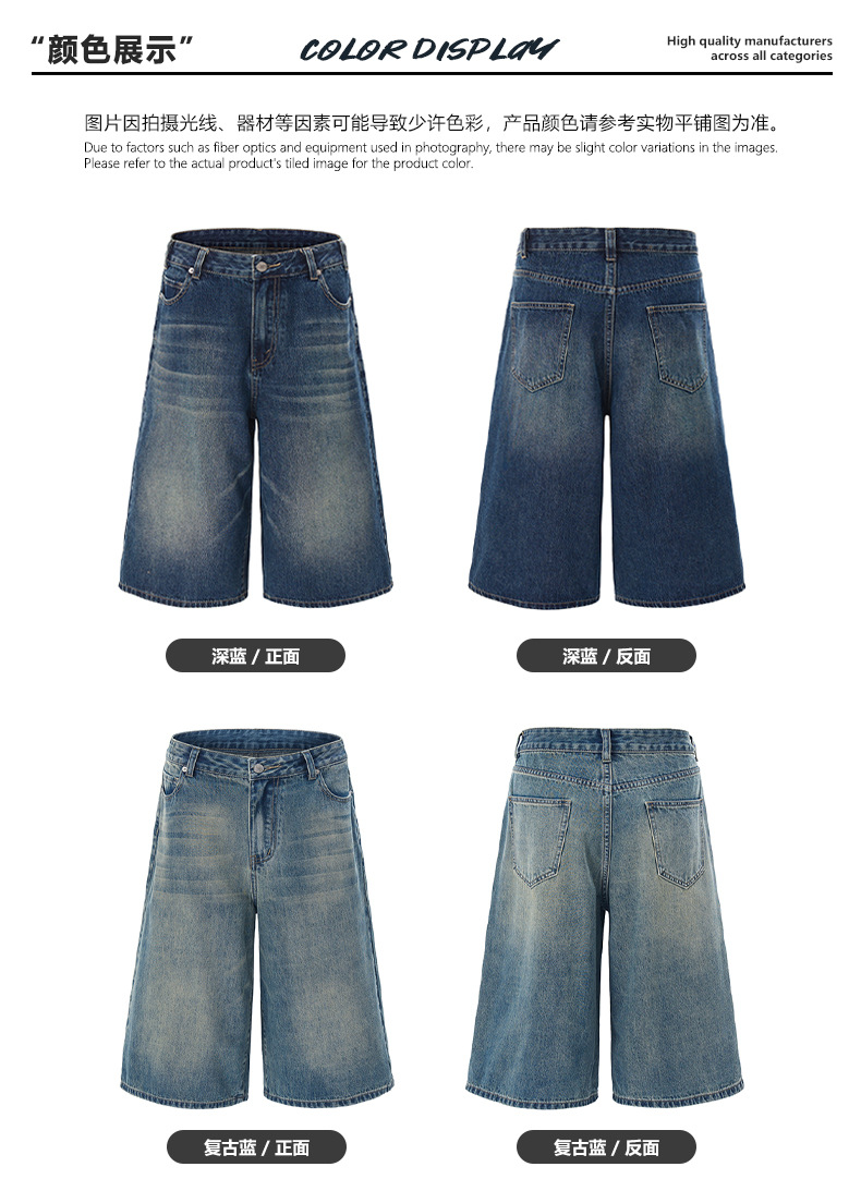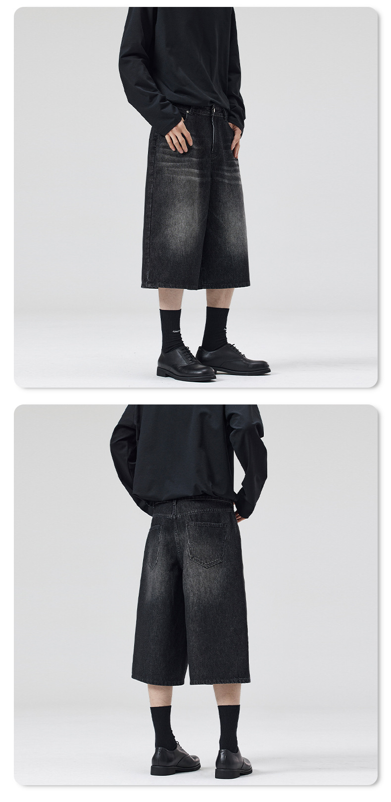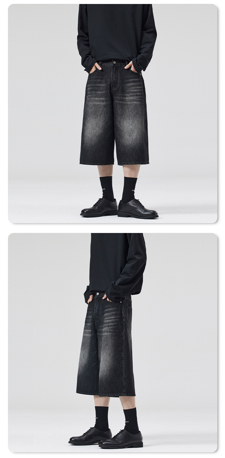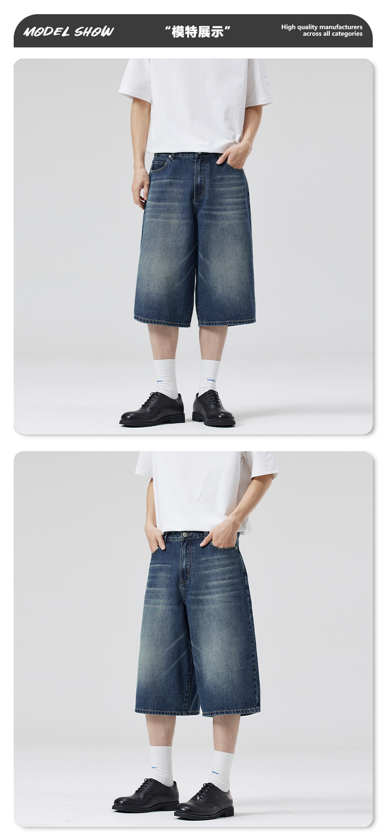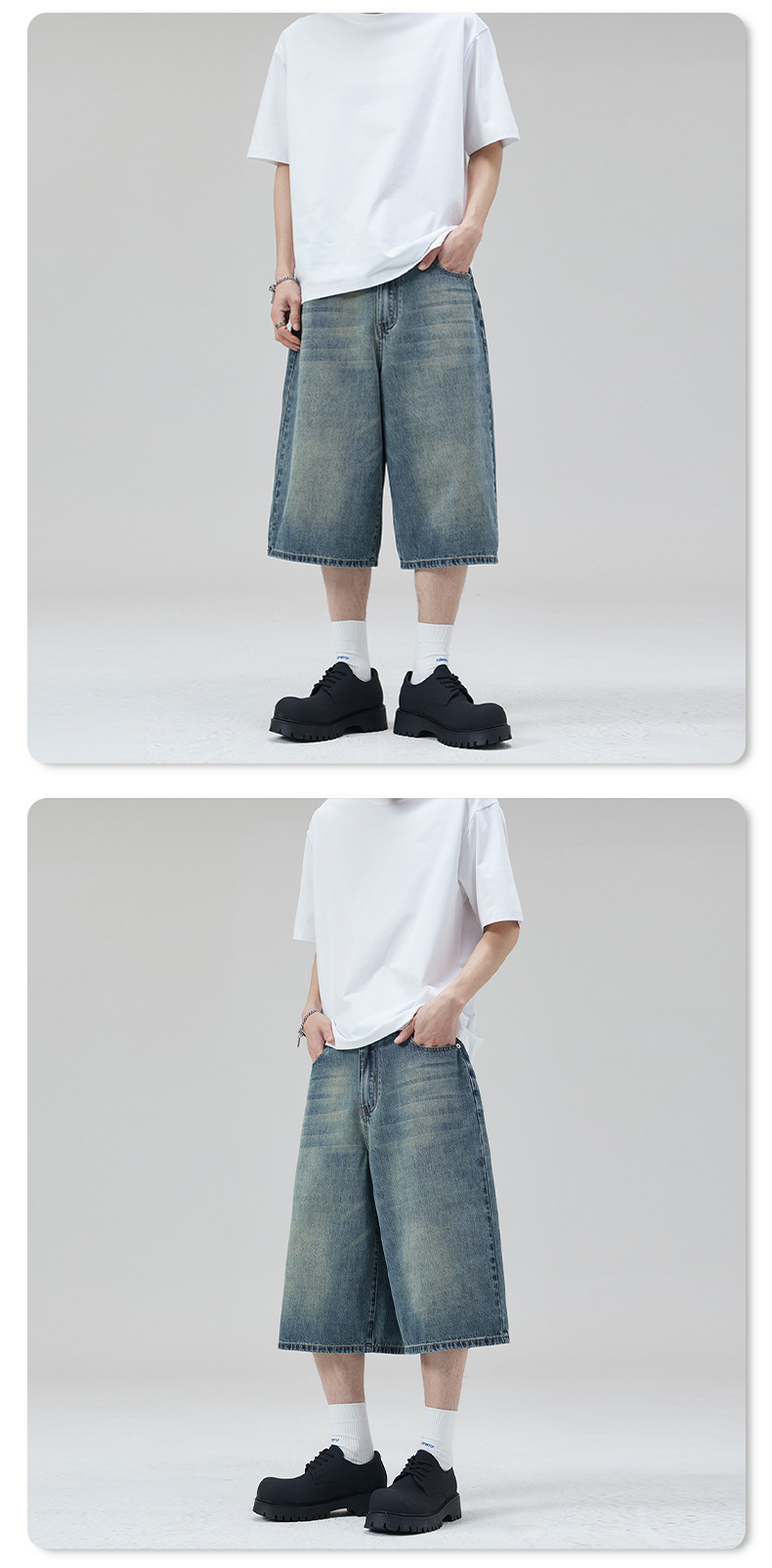 여름 신작 미국 복고풍 트렌디 브랜드 커플 루즈한 와이드 레그 크롭 팬츠 남성용 디스트레스드 스트레이트 슬림 데님 반바지스토어 가기