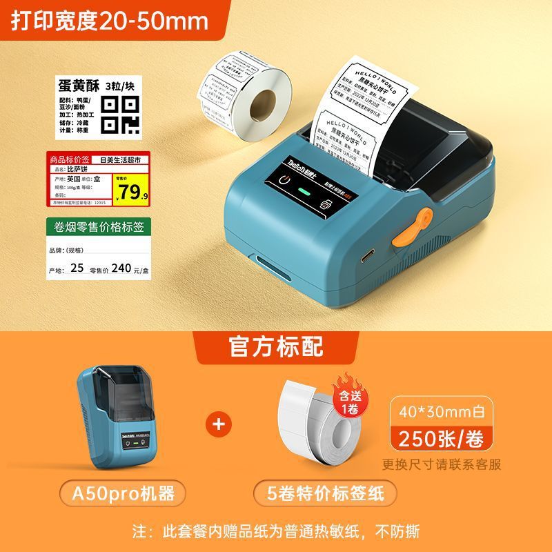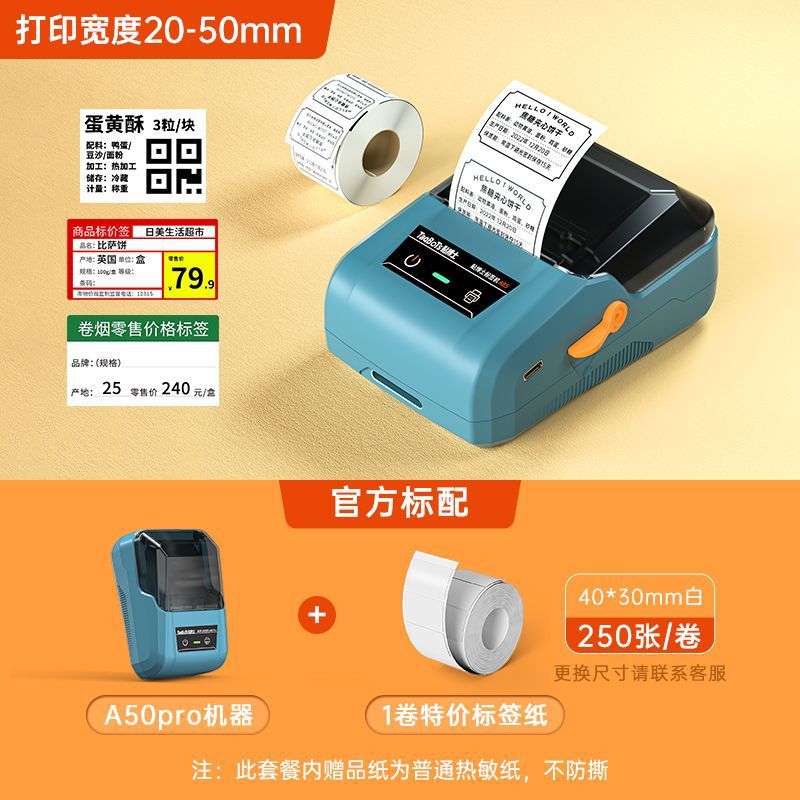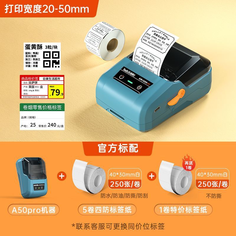 A50Pro 라벨 프린터 열 자체 접착 식품 가격 날짜 라벨 기계 인증서 바코드스토어 가기