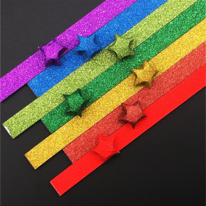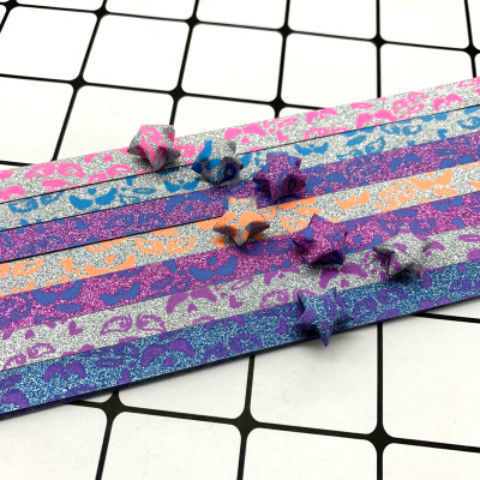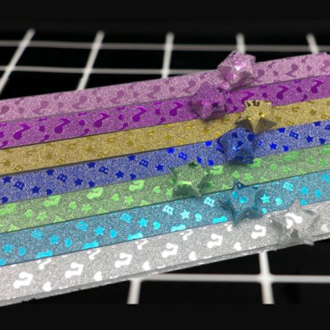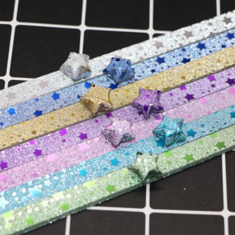반짝이는 다이아몬드 프린트 별 종이 럭키 스타 종이 접기 작은 오각형 수제 재료 소원 색종이 접기