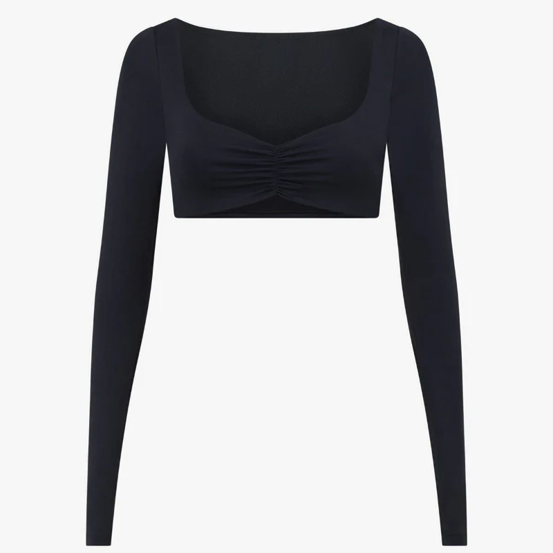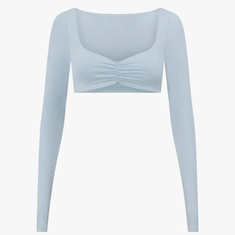새로운 요가복 아마존 스포츠 탑 긴팔 짧은 스타일 섹시한 여성 가슴 패드 고탄성 편안한 슬리밍 피트니스