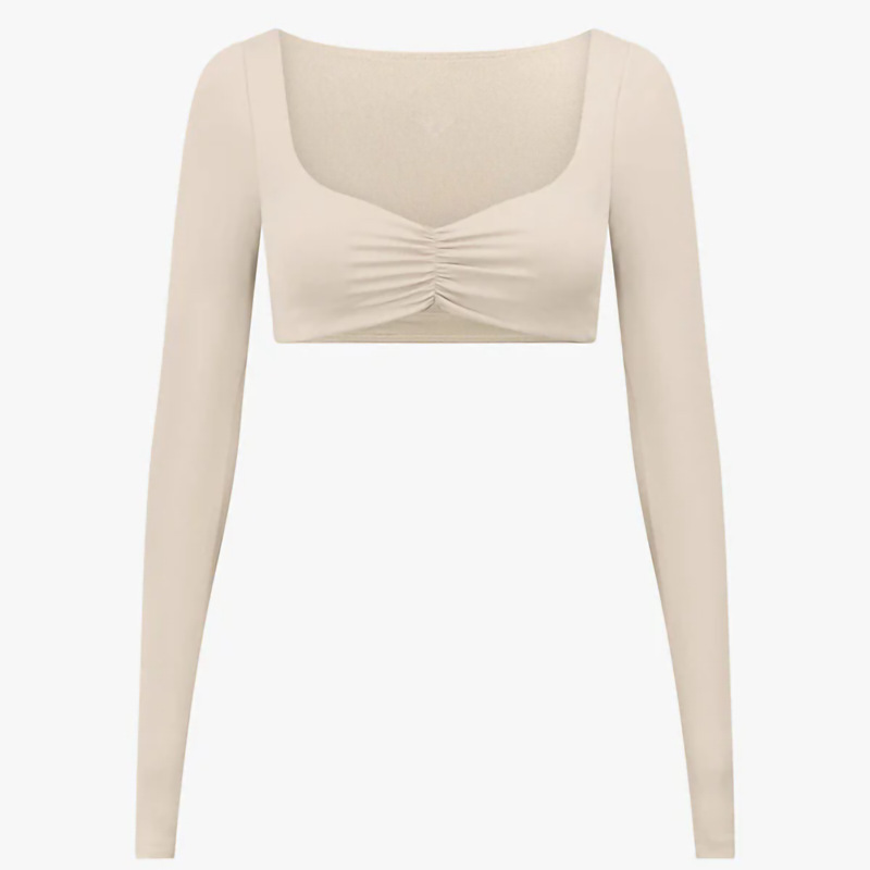 새로운 요가복 아마존 스포츠 탑 긴팔 짧은 스타일 섹시한 여성 가슴 패드 고탄성 편안한 슬리밍 피트니스스토어 가기