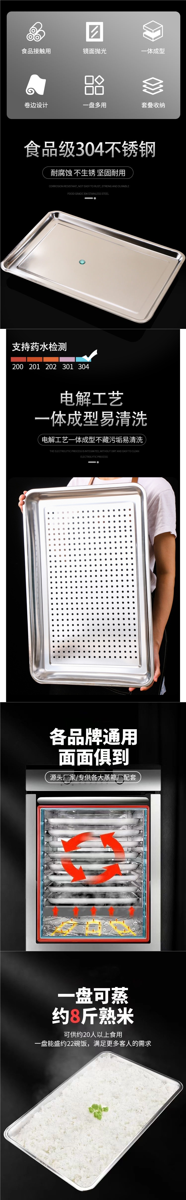밥찜 트레이 304 스테인레스 스틸 식품 등급 60x40 특수 두꺼운 트레이 사각형 트레이 찜통 찜 밥 카트 특수