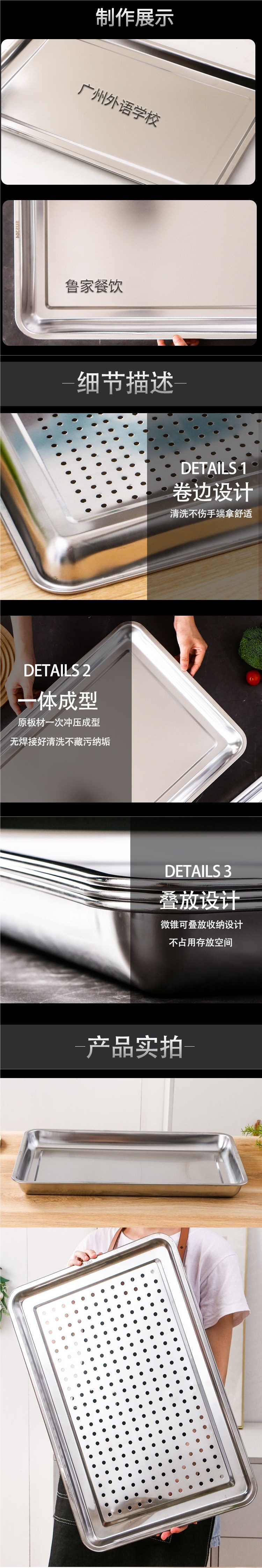 밥찜 트레이 304 스테인레스 스틸 식품 등급 60x40 특수 두꺼운 트레이 사각형 트레이 찜통 찜 밥 카트 특수스토어 가기