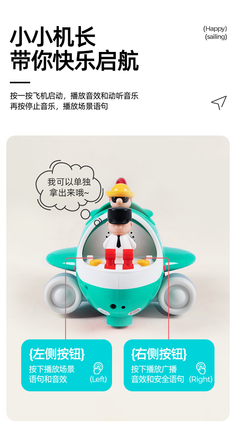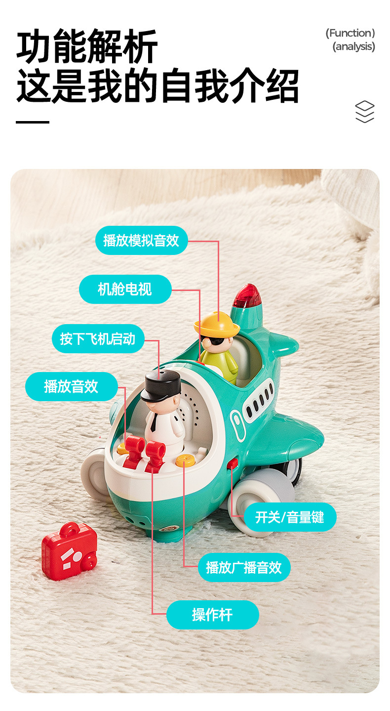 후이레 조기교육용 전동기차, 원격조종 비행기, 아기 계몽 교육용 사운드&라이트 시뮬레이션 모델 자동차 장난감 도매스토어 가기