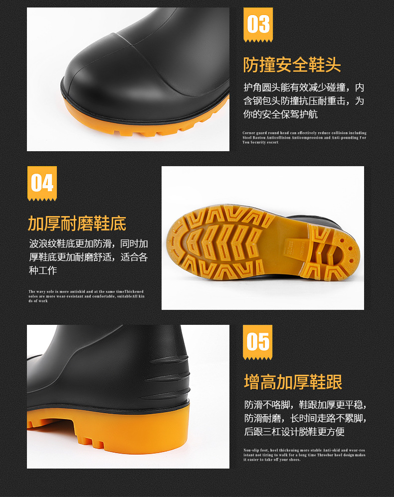 • 47-중간 튜브, 검정색 및 노란색 바닥, 반사 탄성 커프, 찌르기 방지