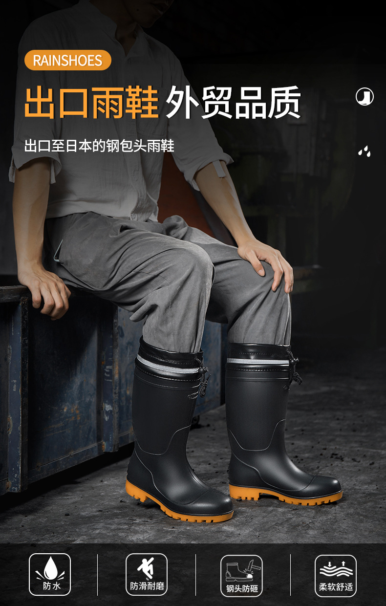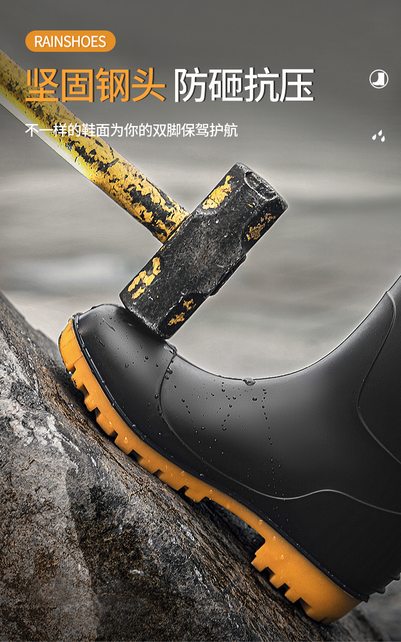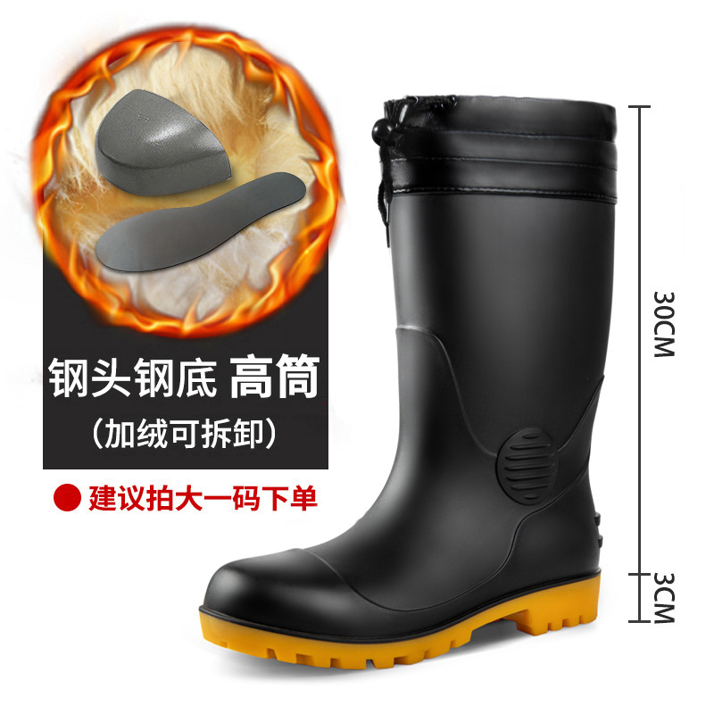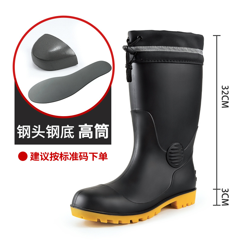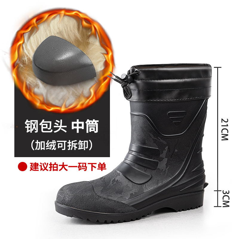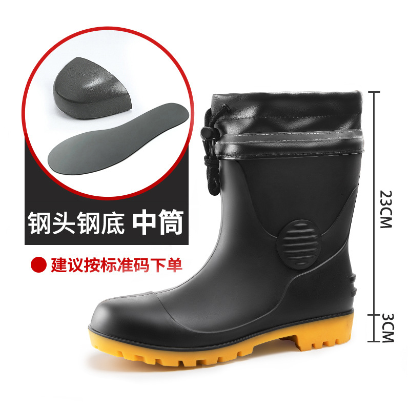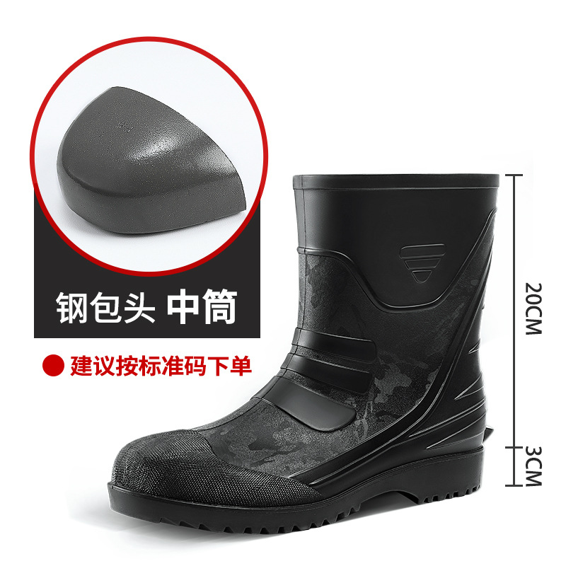 Fuan Mengyu 신발, 충격 방지 및 펑크 방지, 중간 높이 노동 보호 워터 슈즈, 남성용 장화, 강철 발가락 강판 워터 부츠, 미끄럼 방지 고무 신발