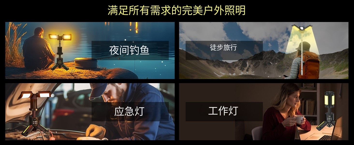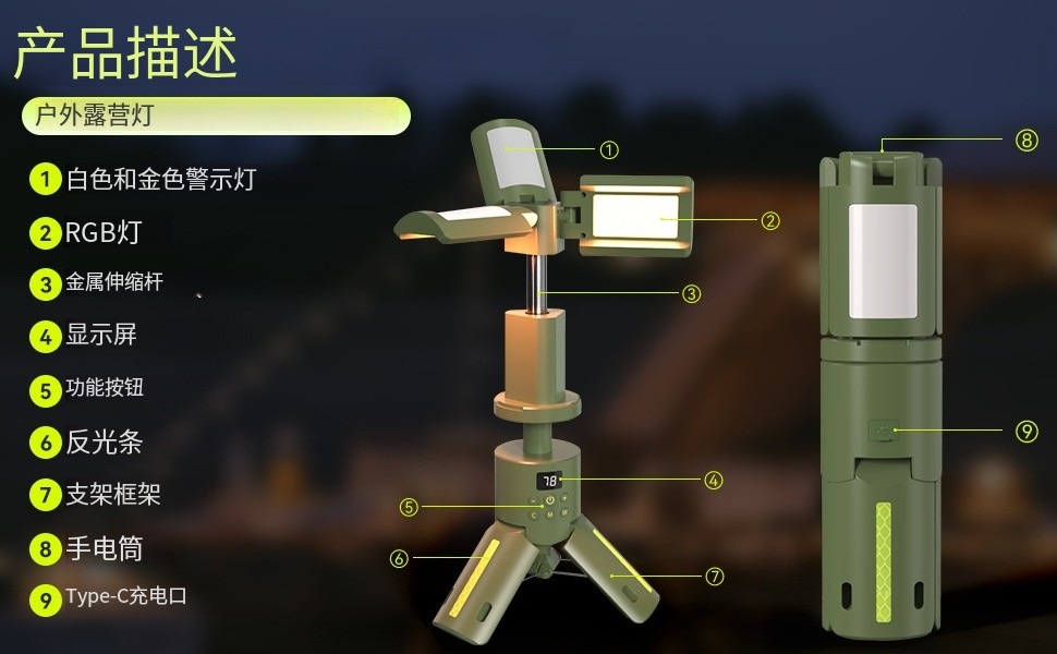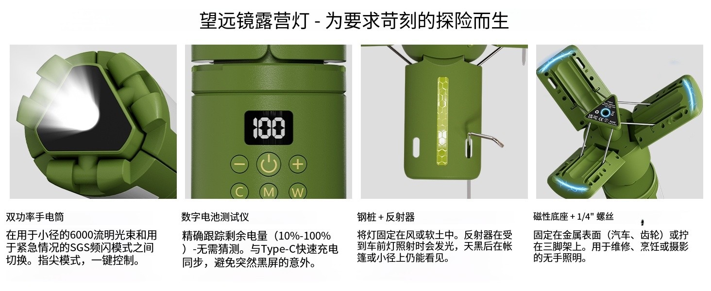 국경 간 야외 휴대용 LED 캠핑 램프 긴 내구성 방수 텐트 램프 다기능 텔레스코픽 비상 캠핑 램프