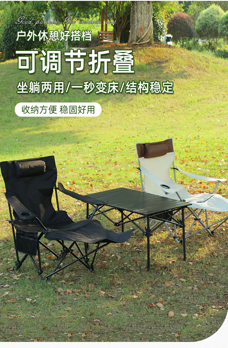 户外折叠椅厂家批发露营可调节椅子坐躺两用椅便携式办公室休闲椅