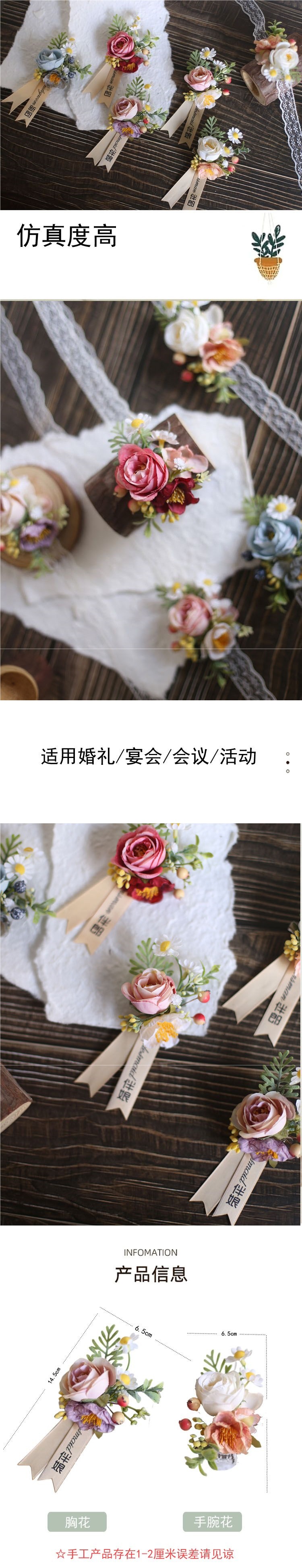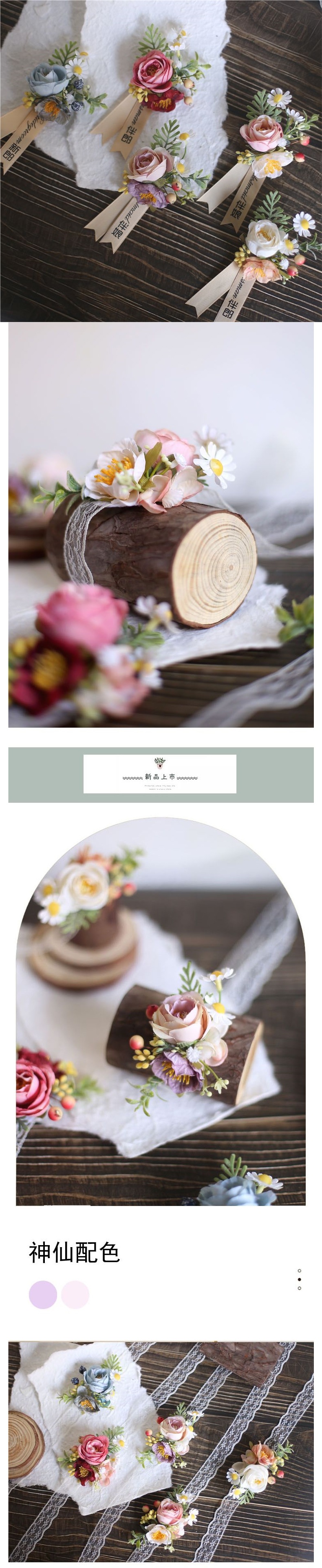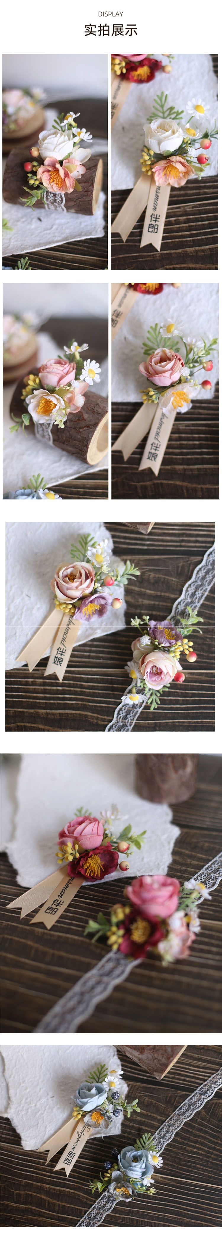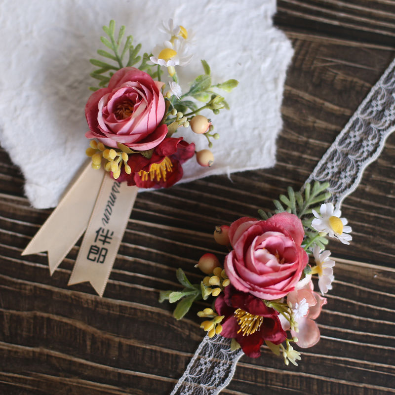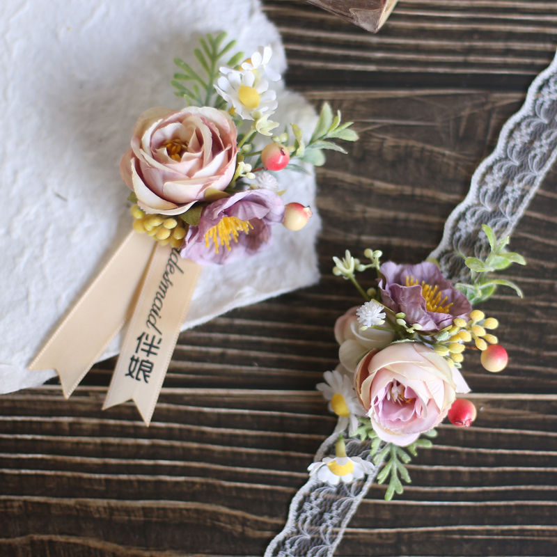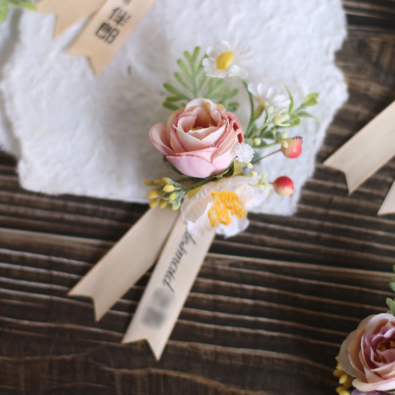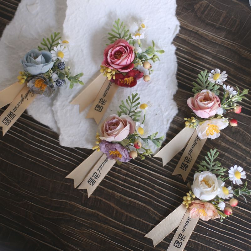 결혼식 신랑 신부 코사지 손목 꽃 한국식 라이트 럭셔리 심플 인 스타일 야외 신랑 들러리 신부 들러리 부모스토어 가기