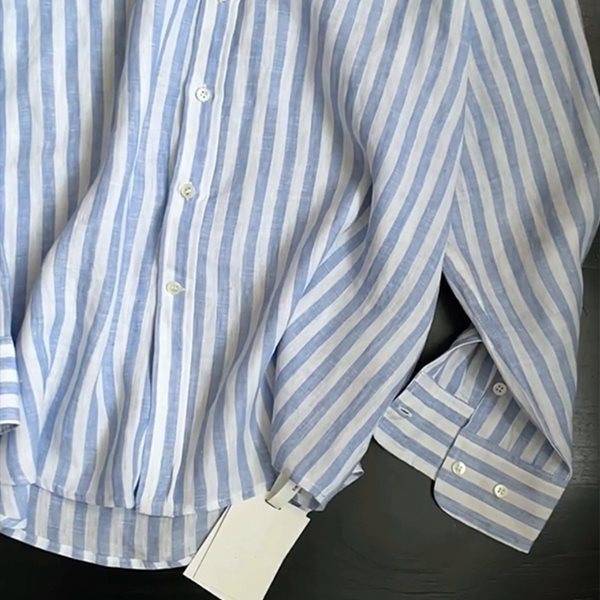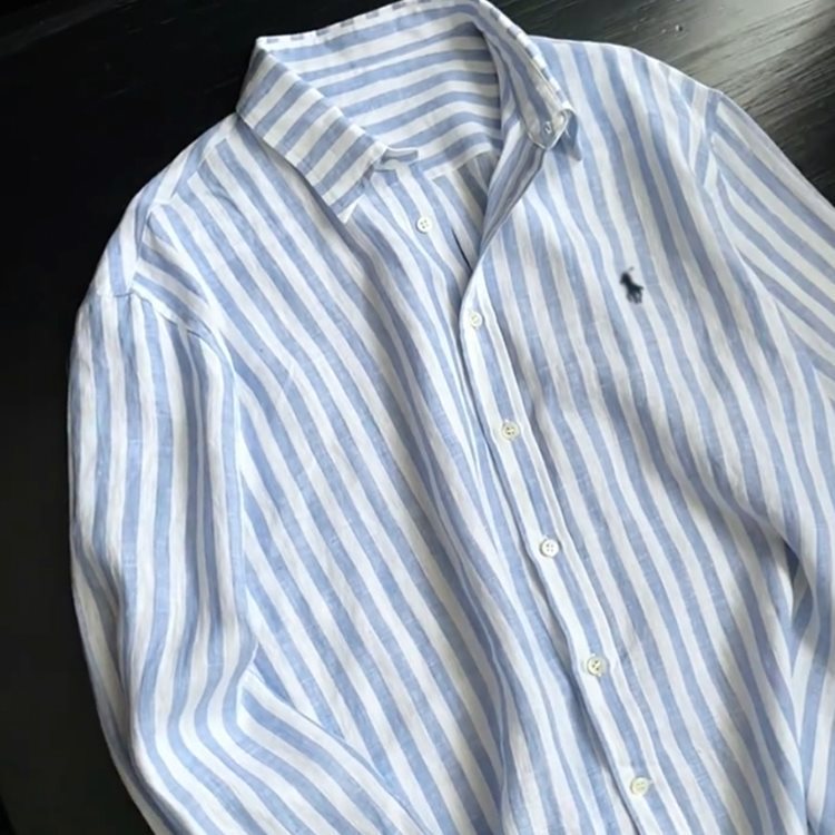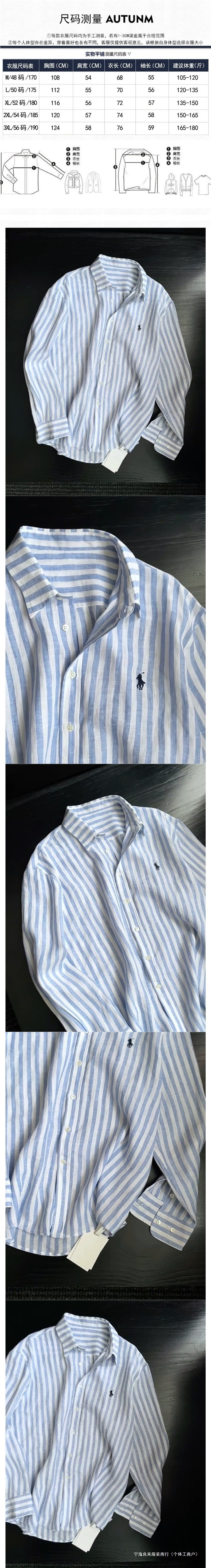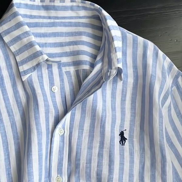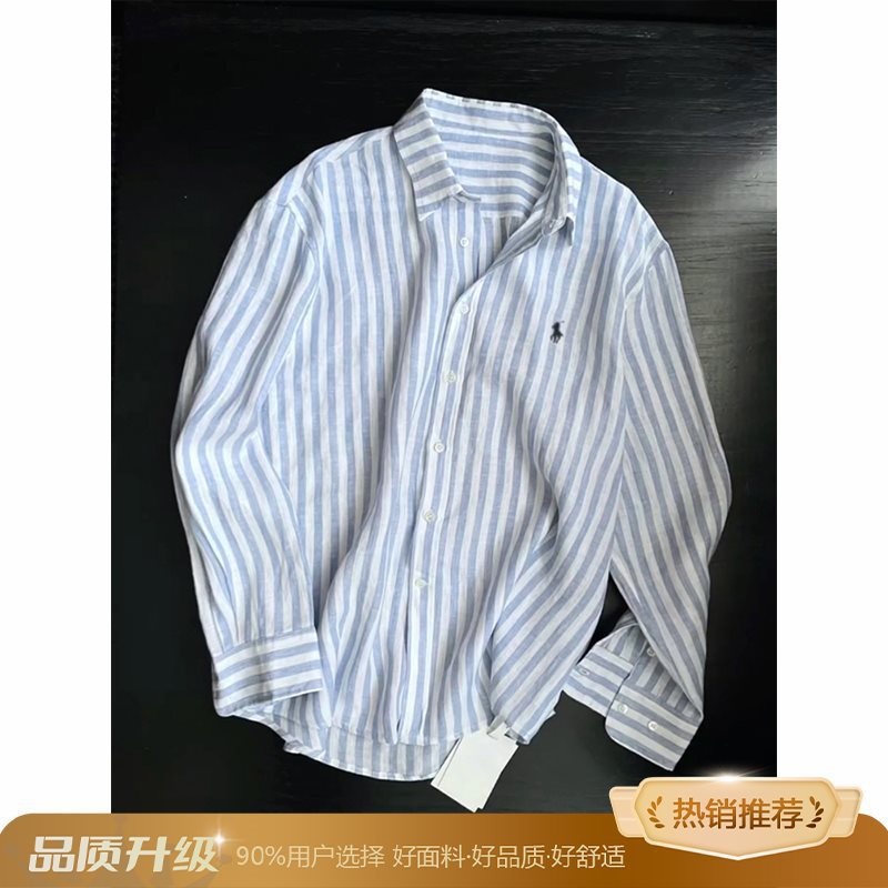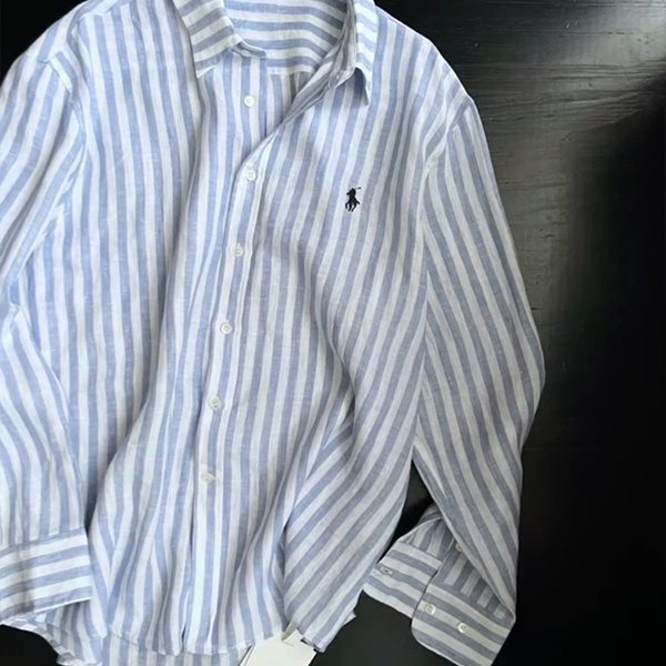 소년을위한 작은 말 자수 디자인 파란색 줄무늬 긴팔 셔츠 여름 느슨한 게으른 스타일 경량 태양 보호 셔츠 재킷스토어 가기
