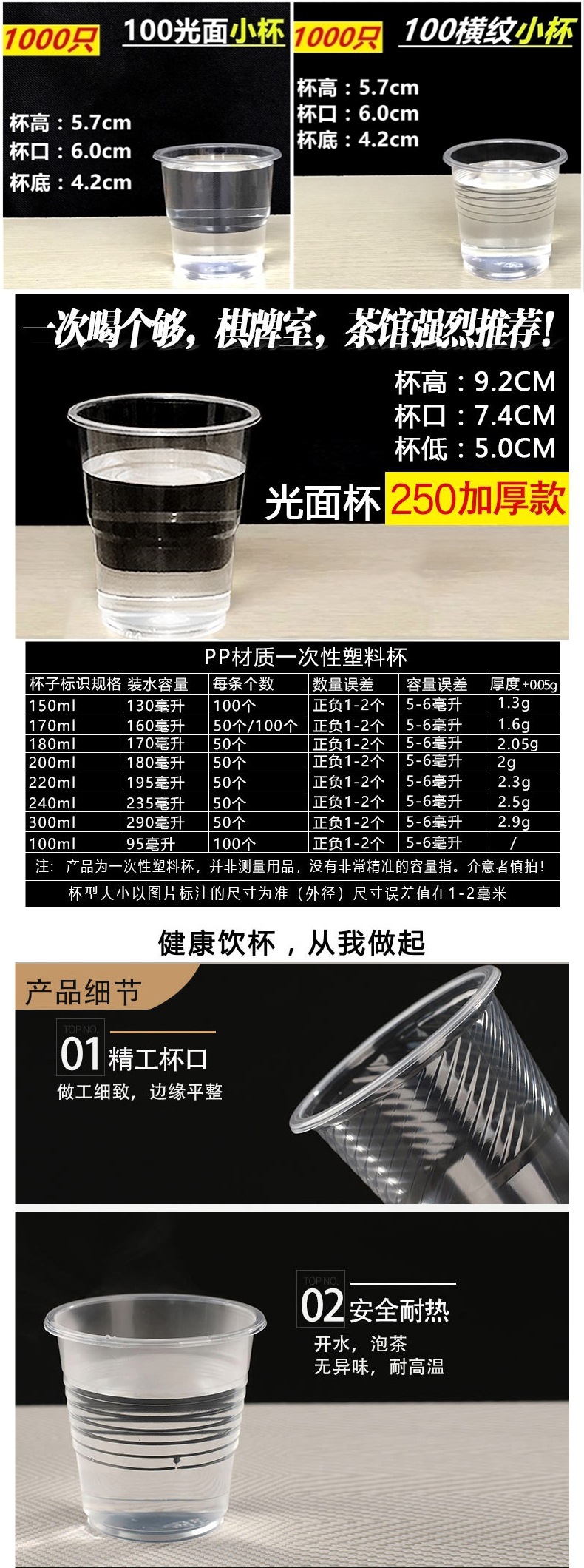 • 걸쭉한 180ml 플라스틱 컵, 200개
