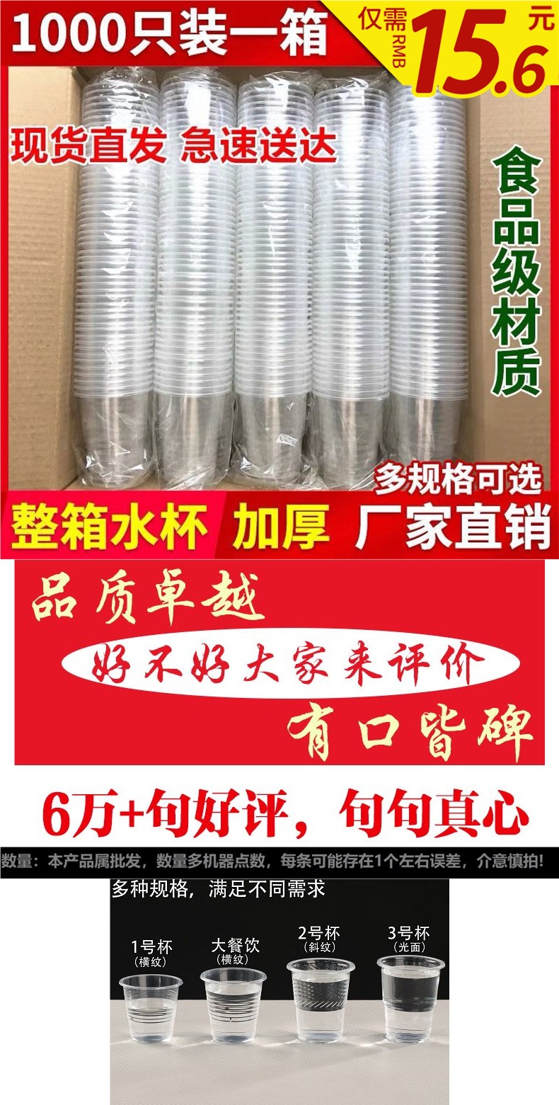 일회용 컵 플라스틱 컵 투명 도매 두꺼운 항공 컵 식수 가정용 상업용 컵 차 컵 전체 상자스토어 가기
