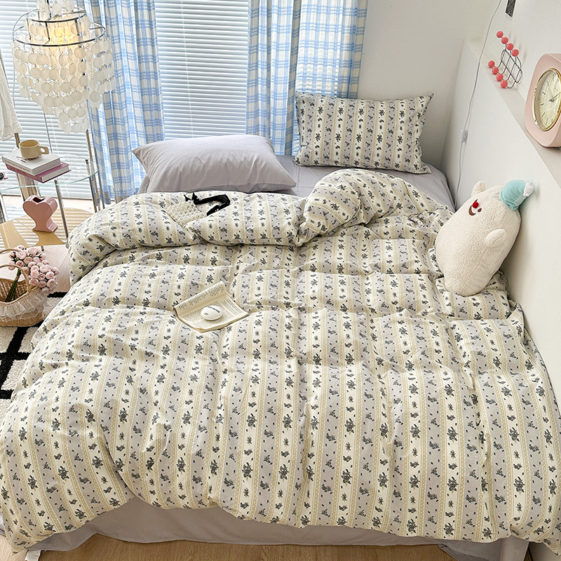 순면 꽃무늬 침대 시트 4종 세트 순면 100 이불 커버 베개 커버 침대 3종 세트 세탁기로 세탁 가능한 가정용 25종