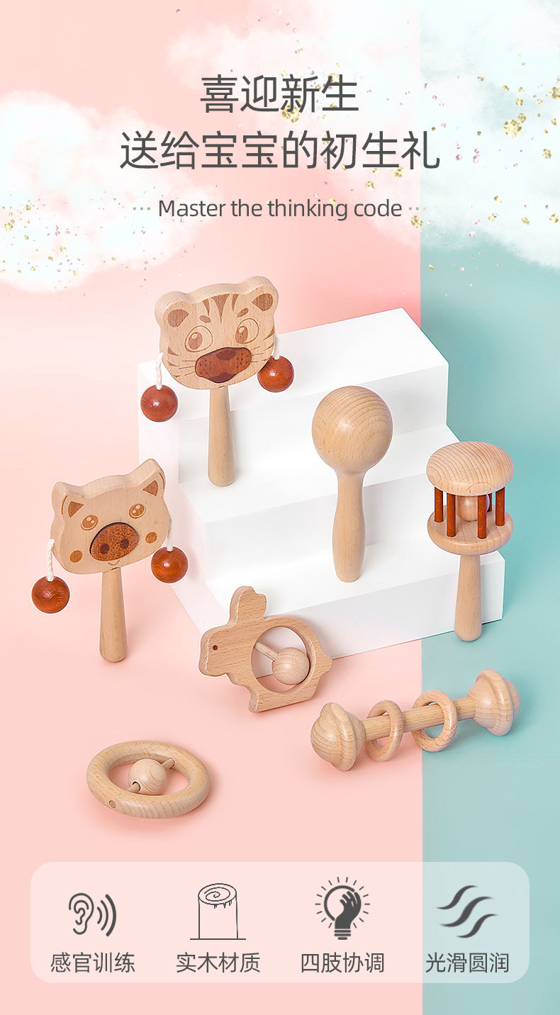 어린 아이들의 나무 음악 교육 보조 단단한 나무 손 딸랑이 아기 생일 선물 상자 딸랑이 나무 장난감스토어 가기