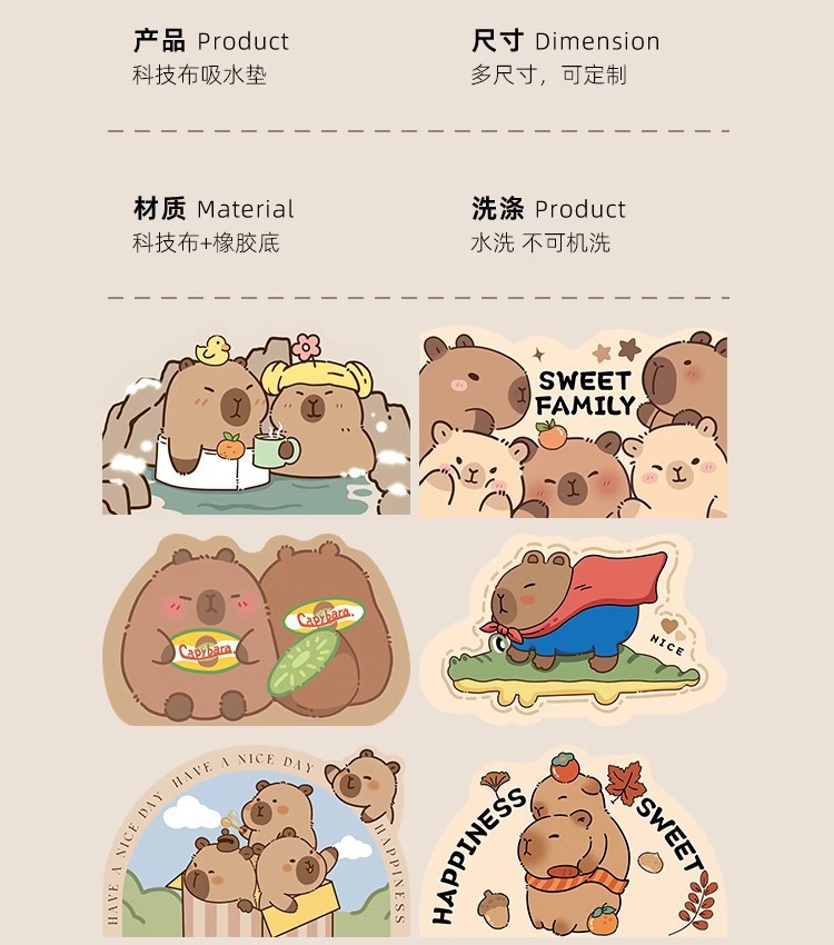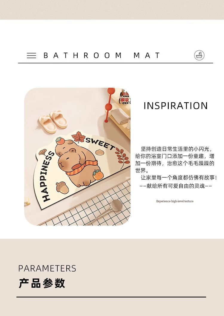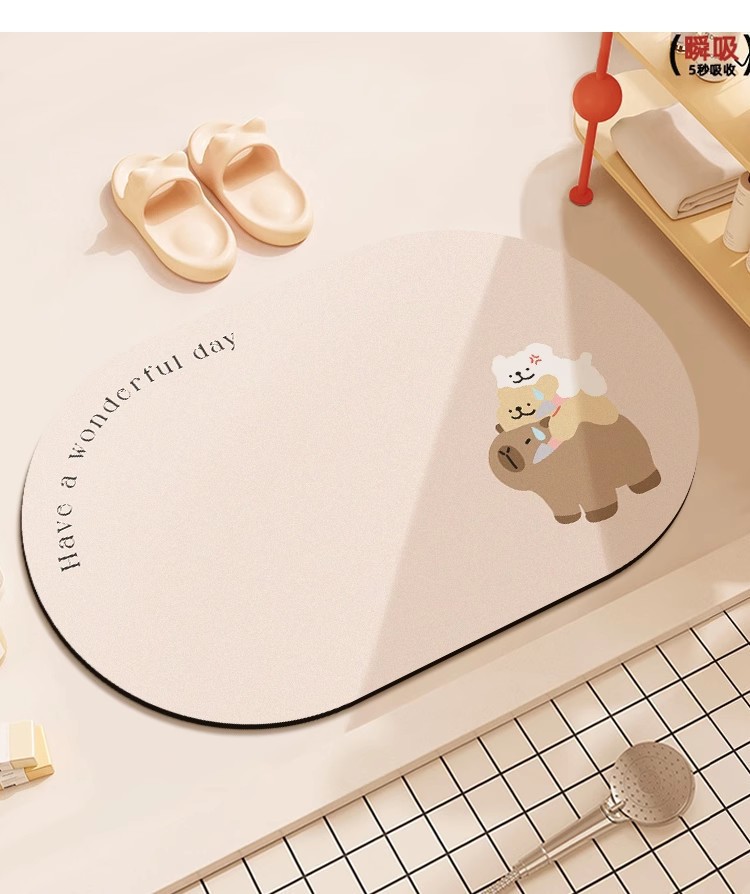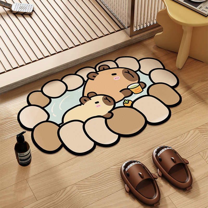 Kapibala 기니피그 욕실 흡수성 바닥 매트, 욕실 얼룩 방지 미끄럼 방지 도어 매트, 내마모성 및 관리 용이 도매