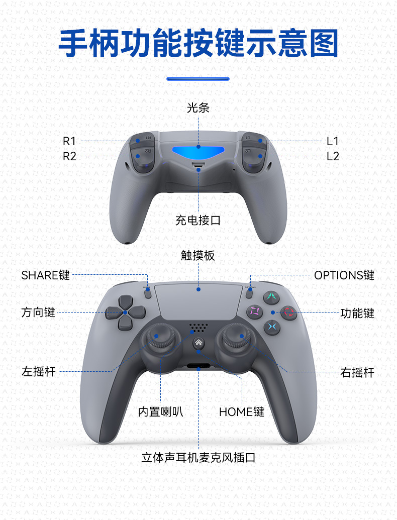 4.导电胶按键,电竞3D摇杆,模拟量导胶扳机;