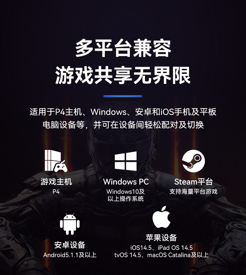 1.多平台兼容:P4/Windows PC/Steam平台/安卓和iOS手机及平板电脑设备等;