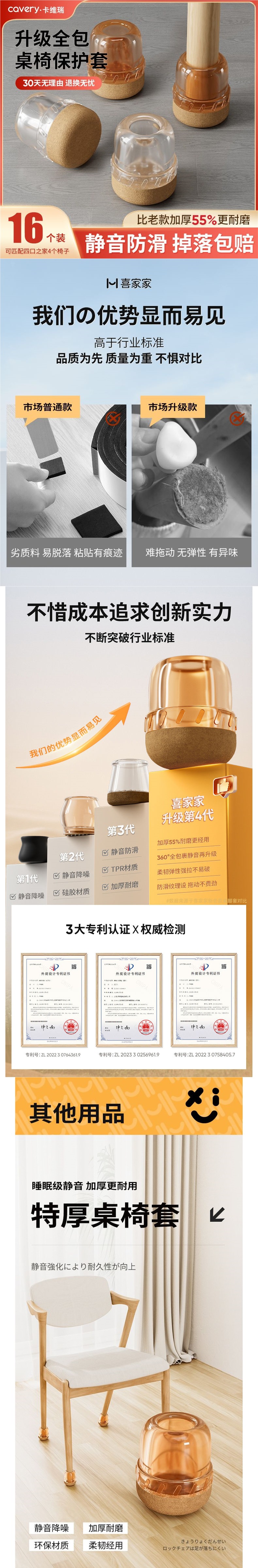 • 4세대 - 투명 16팩 [미끄럼 방지 스트라이프 + 저소음 내마모성]