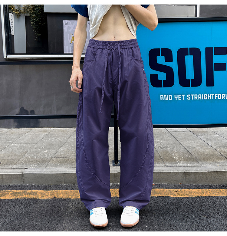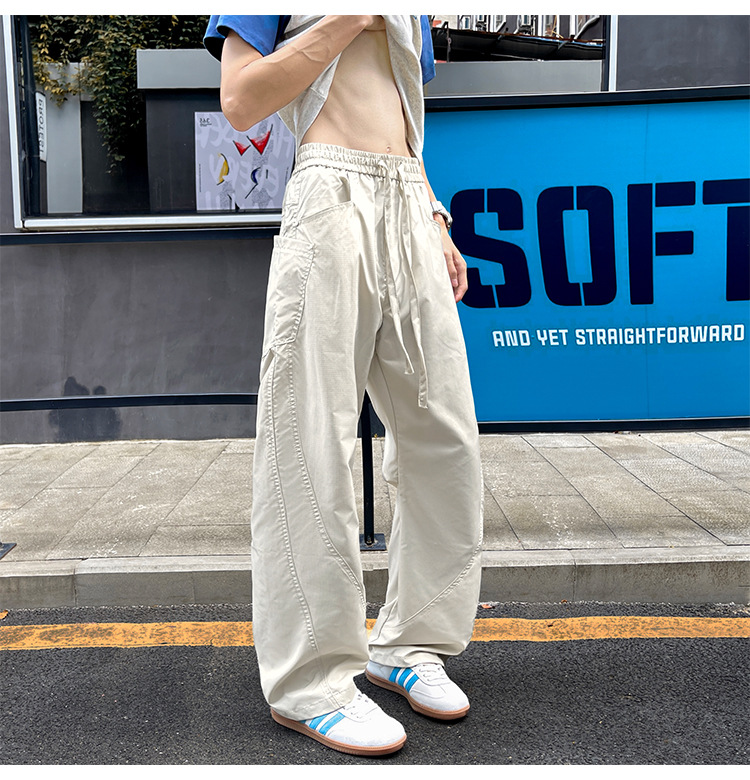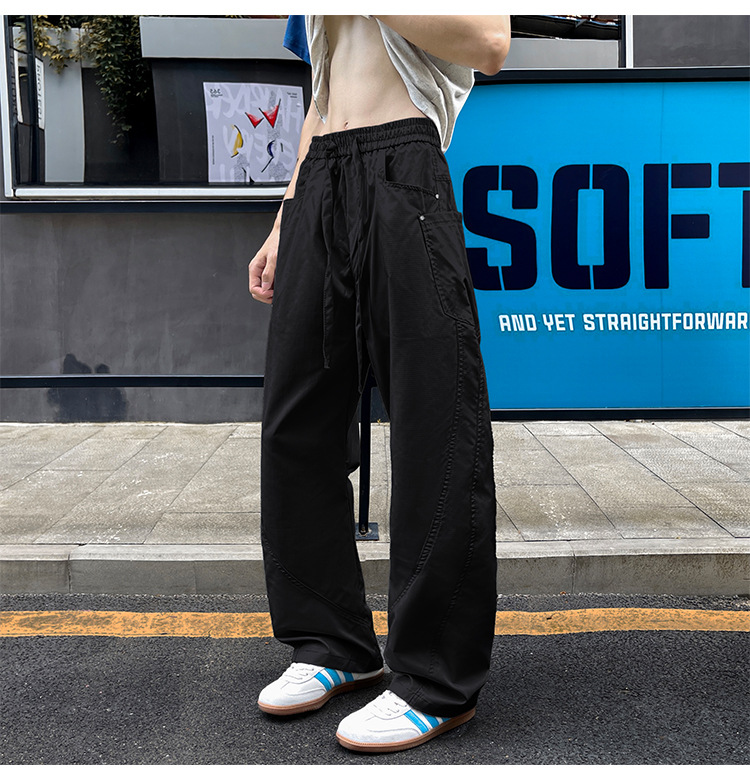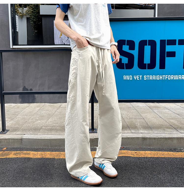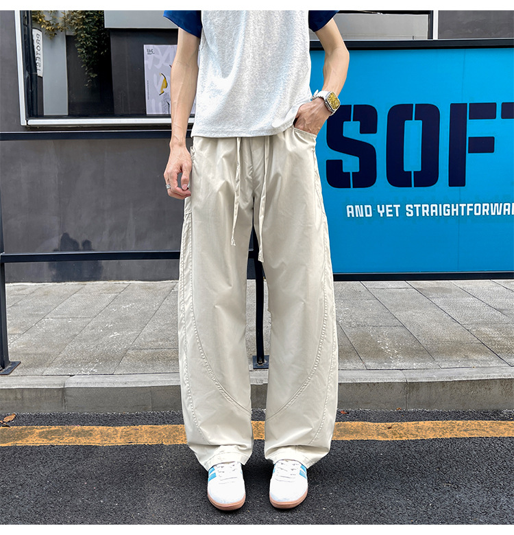 아메리칸 세이버 워크웨어 남성용 여름 얇은 2025 새로운 루즈 아이스 실크 속건 캐주얼 롱 팬츠
