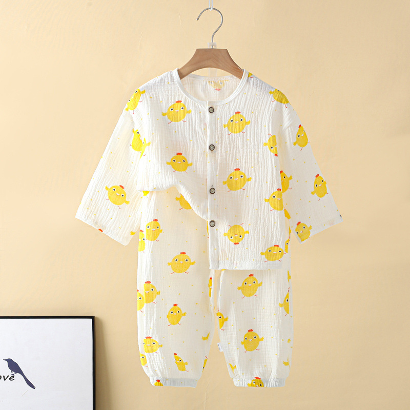 아동용 가정복, 여름용 얇은 양복, 순면 이중 거즈 잠옷, 면 거즈, 남녀 아동용 중대형 아동용 에어컨 의류스토어 가기