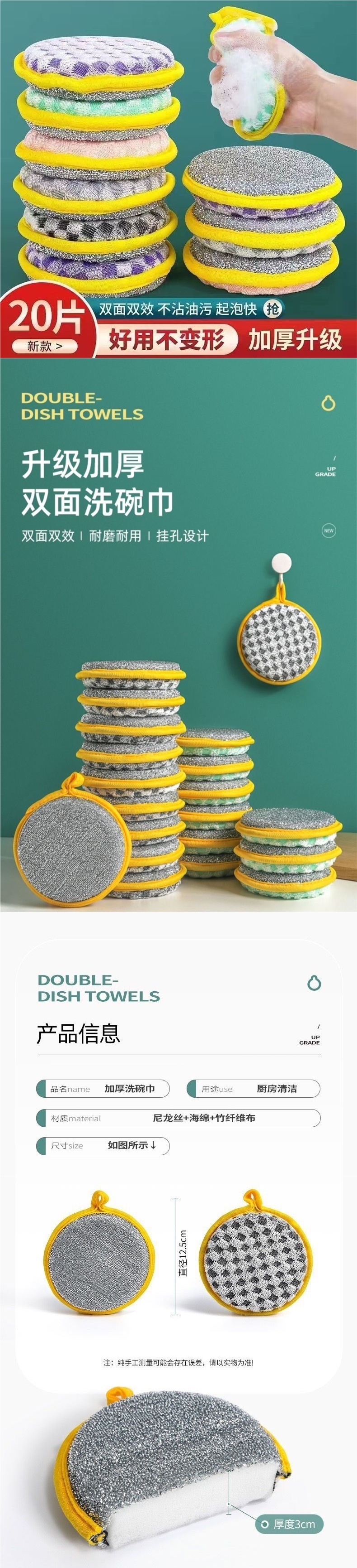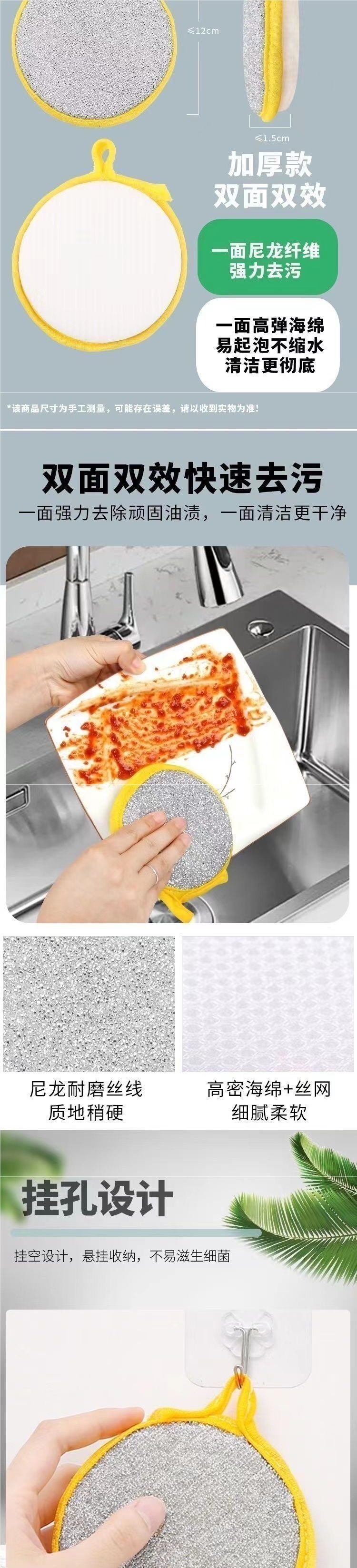 스펀지 청소 천 두꺼운 양면 붙지 않는 오일 브러시 냄비 가정용 매직 세탁 기저귀스토어 가기