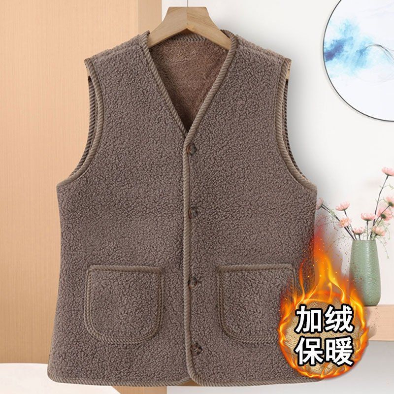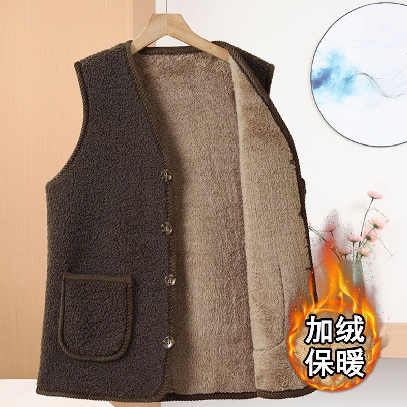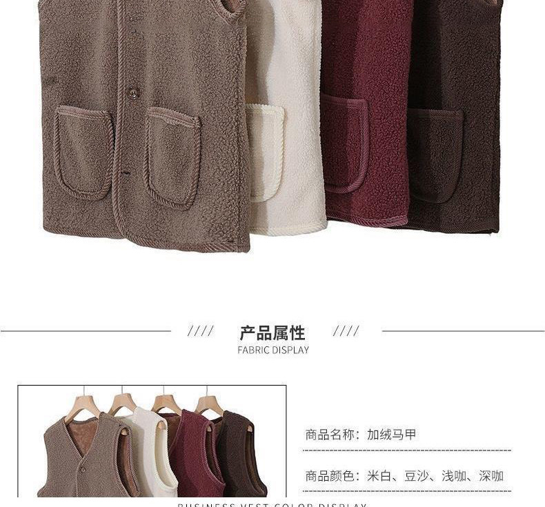 중년 및 노년 여성의 가을 겨울 곡물 벨벳 조끼, 중년 어머니의 모조 양털 조끼, 벨벳 두꺼운 조끼스토어 가기