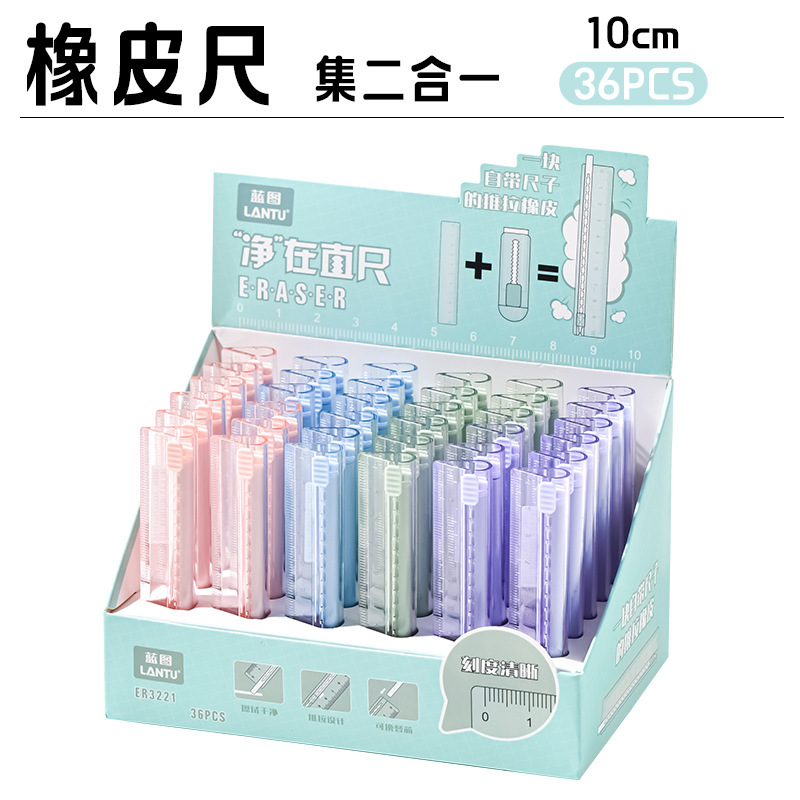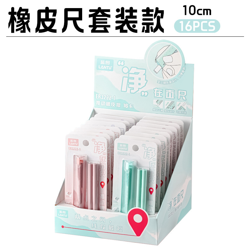 초등학생을 위한 창의적인 프레스 눈금자 지우개 투인원 문구 세트, 고급 지우개 학용품 도매스토어 가기