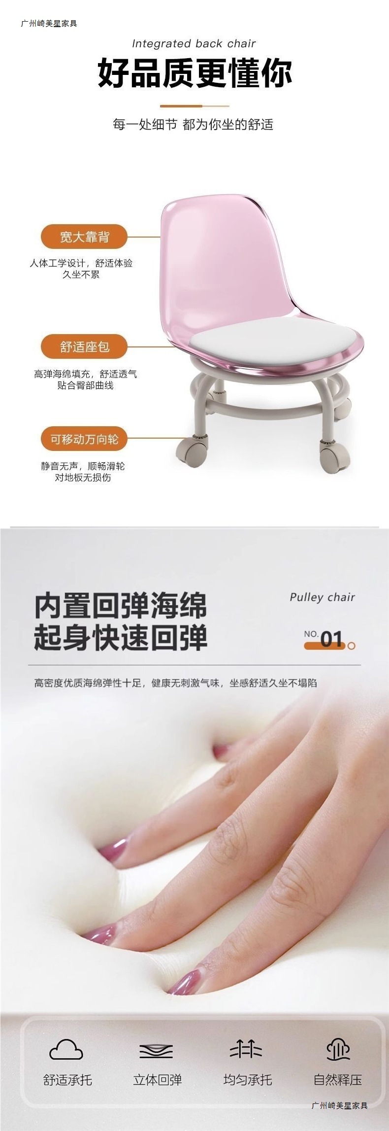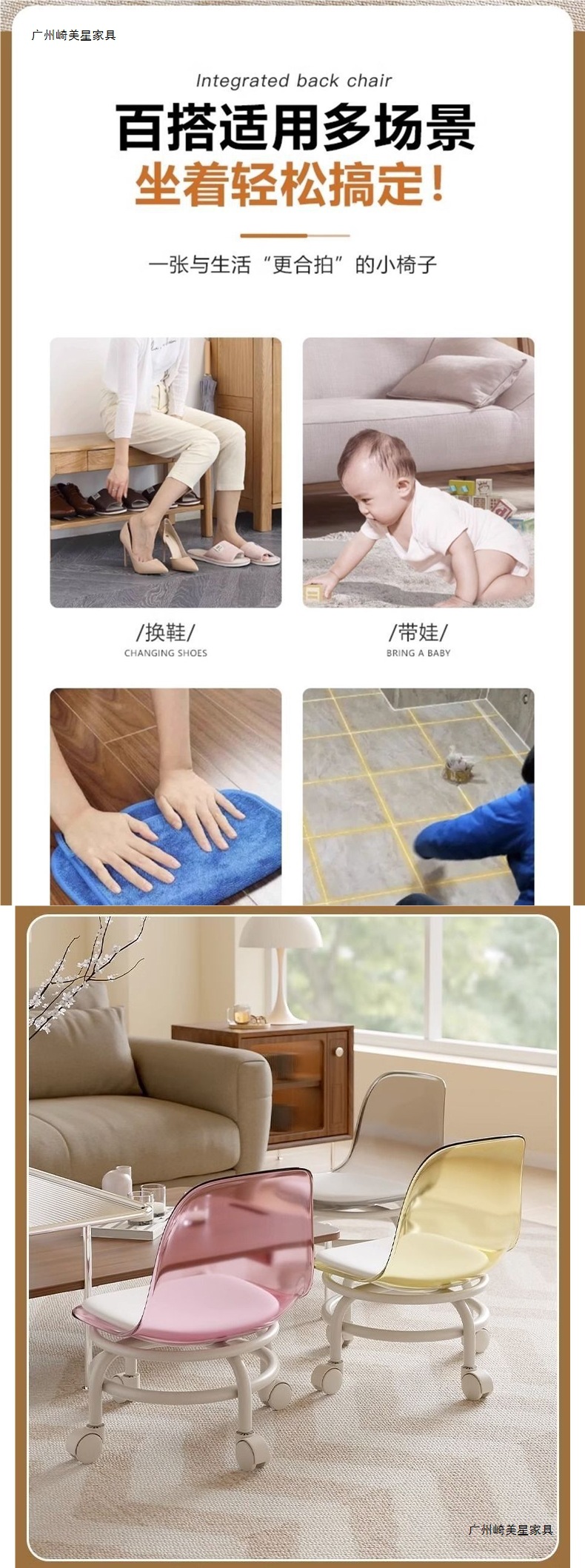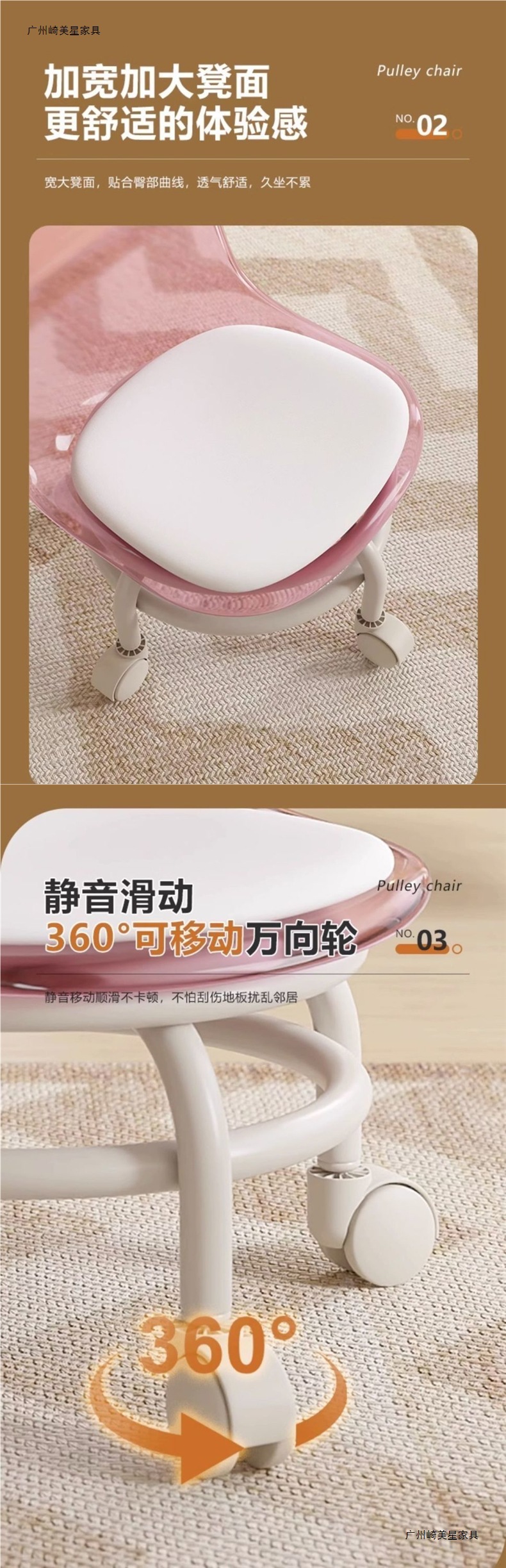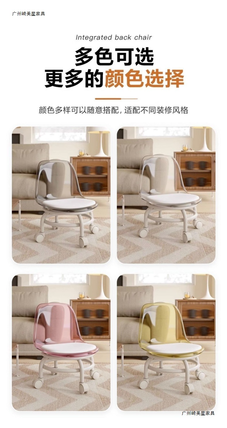 아크릴 의자 자동 범용 휠 어린이 유아 의자 메쉬 풀리 작은 의자