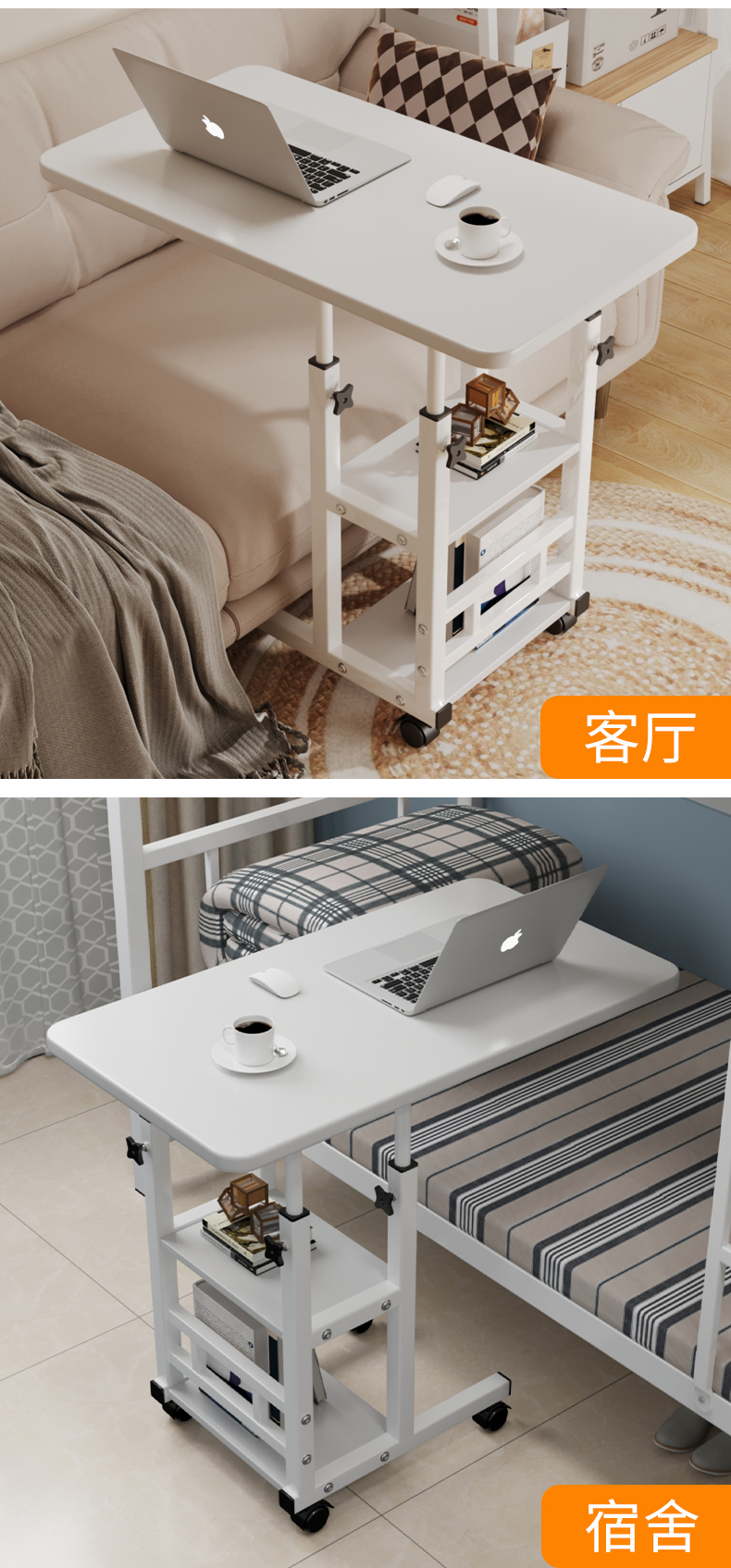 • 따뜻한 흰색 (80*40) 침대 테이블 겸용 2단 책상 (높이 조절 가능)