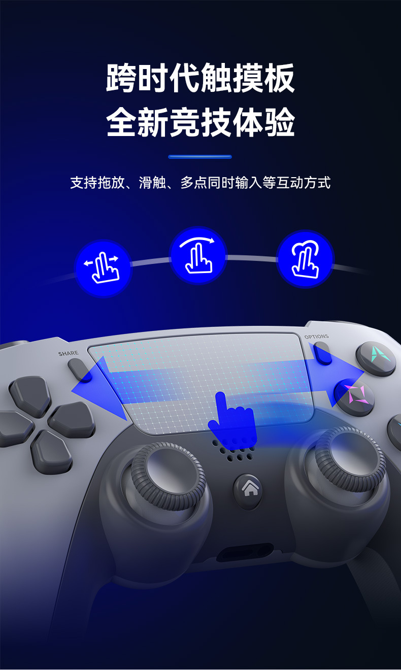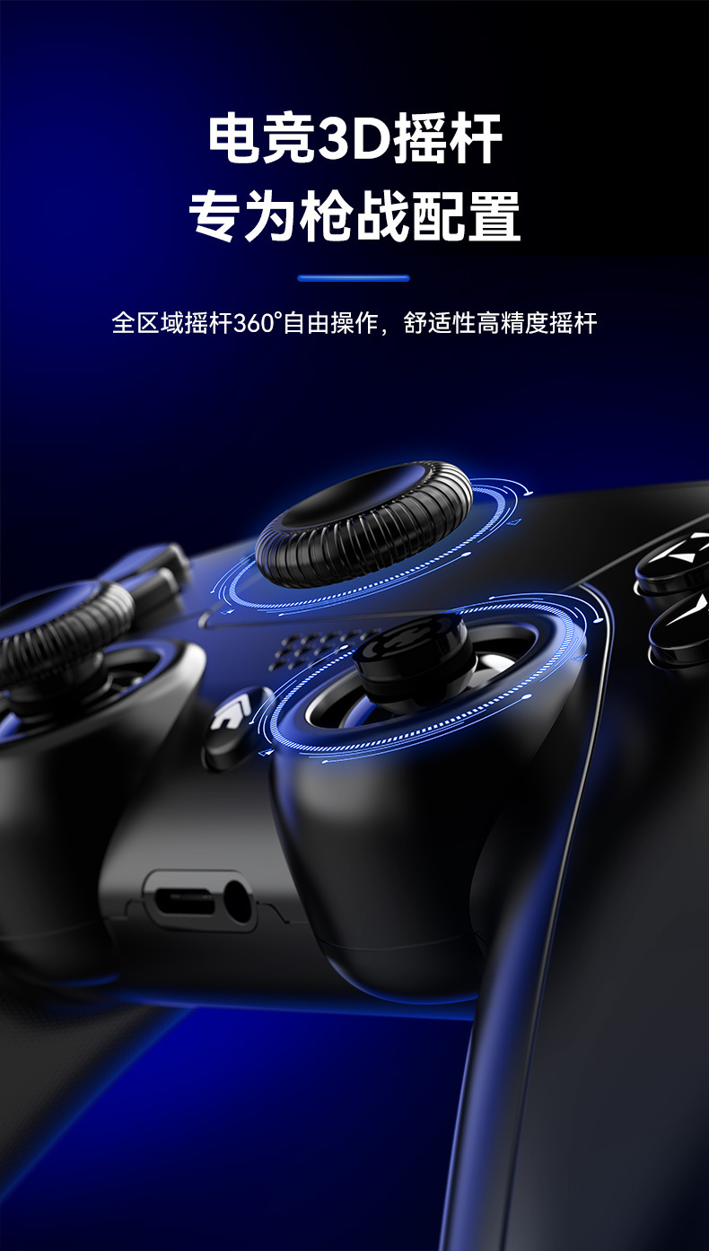 4.导电胶按键,电竞3D摇杆,模拟量导胶扳机;