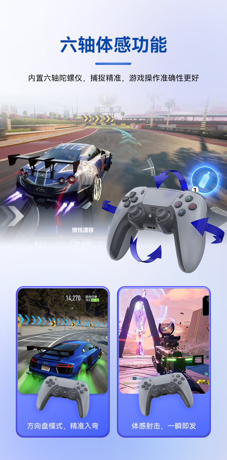 2.支持六轴体感、非对称双振动马达功能;