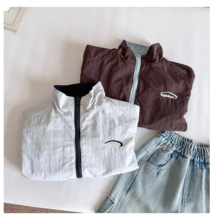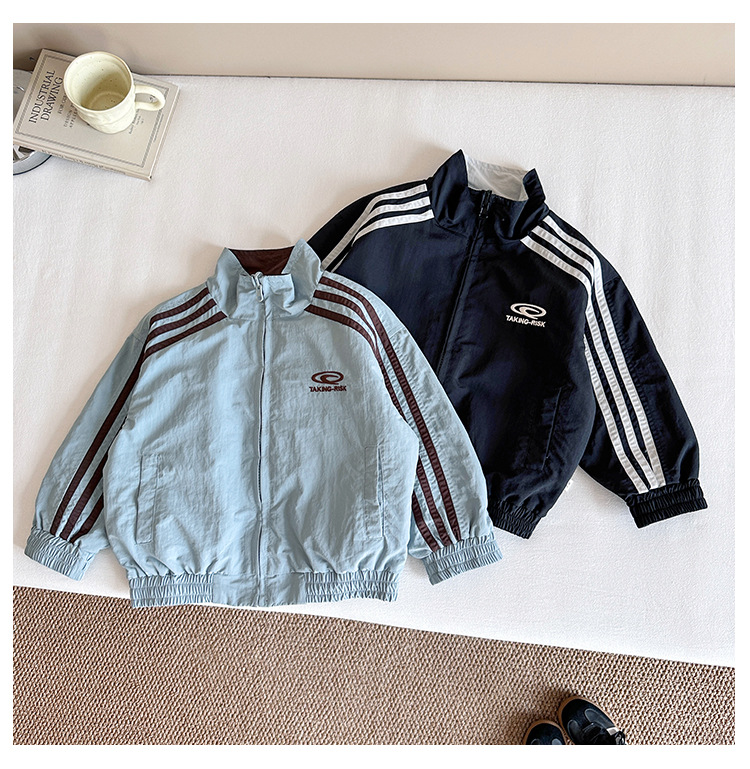 바람의 계곡 2025 가을 신작 아동복 아동 한국식 양면 스트라이프 재킷 소년 대비 색상 잘 생긴 재킷