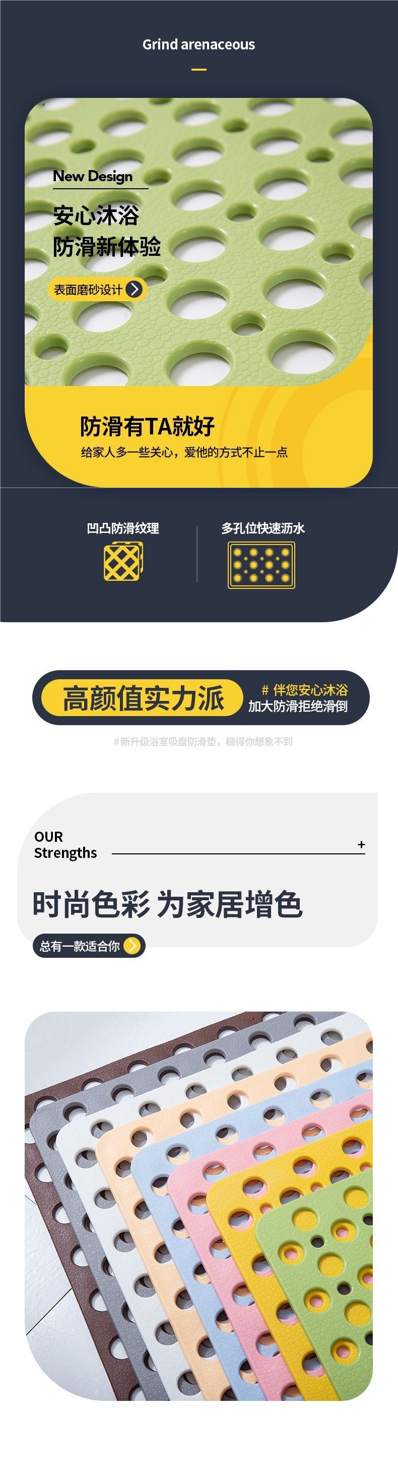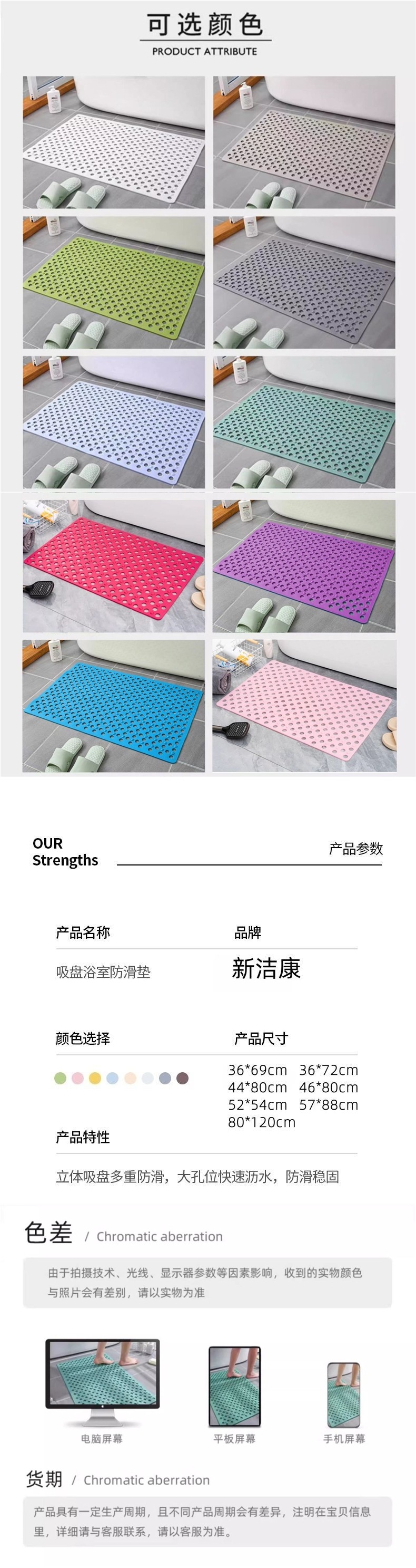 욕실 미끄럼 방지 바닥 매트, 샤워실, 화장실, 다공성 방수, 가정용 노인 및 어린이 목욕 낙하 방지 매트스토어 가기