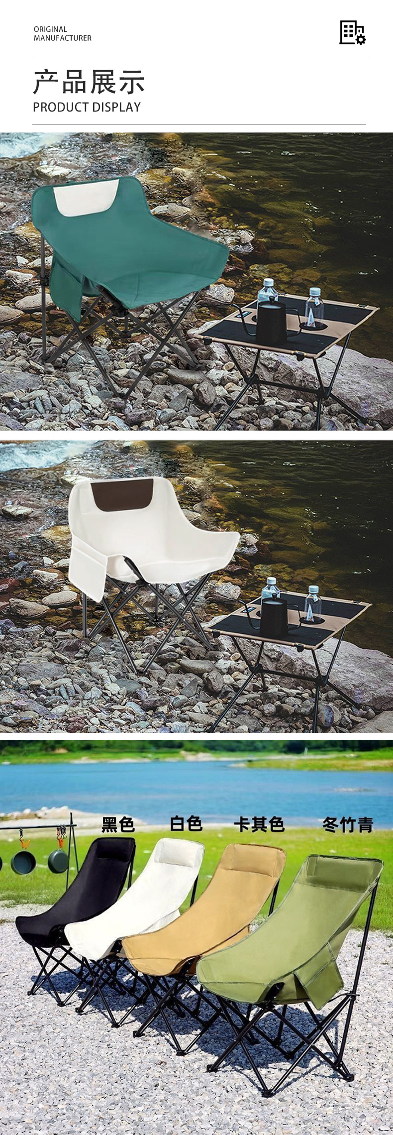 접이식 달 의자 조절 가능한 안락 의자 휴대용 캠핑 장비 야외 바베큐 낚시 등받이 의자 점심 시간 해변 의자