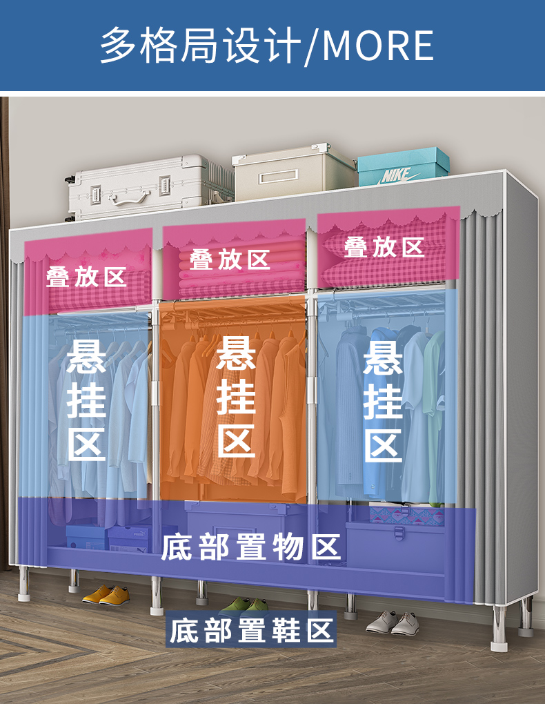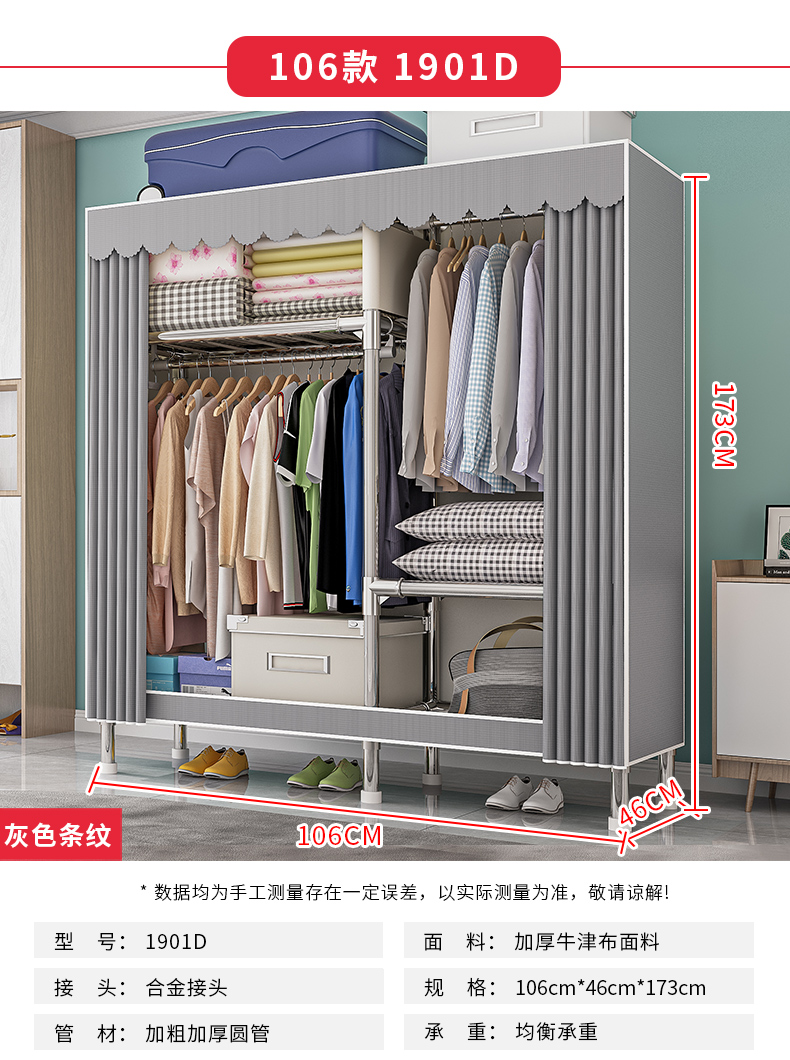 옷장, 옷장, 기숙사 옷장, 가정용 침실 임대 주택, 간단한 천 옷장, 강철 구조물 두꺼워짐