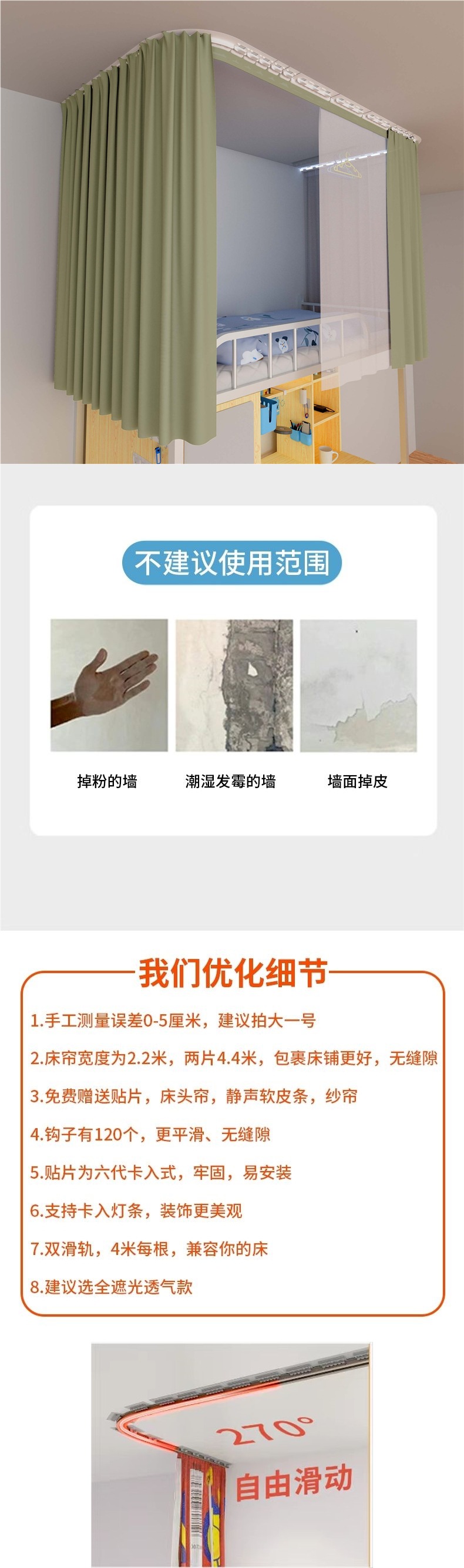 • 말차 높이 1.75M 침대 커튼 강력한 차광 통기성 및 액세서리 라이트 스트립