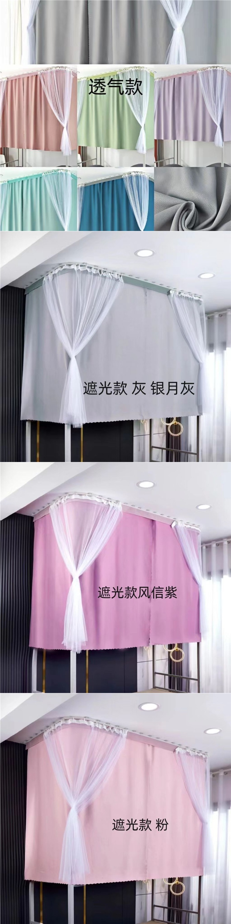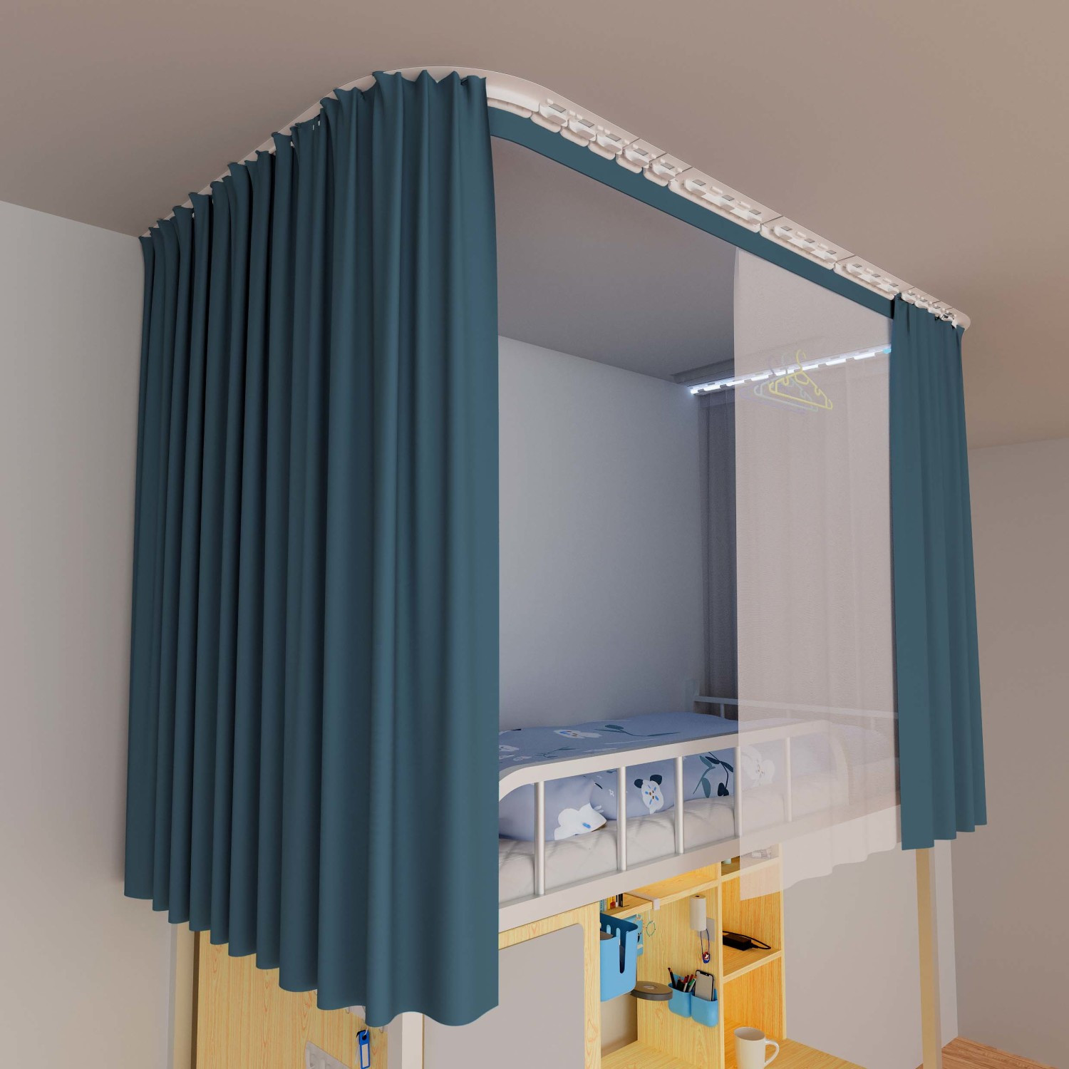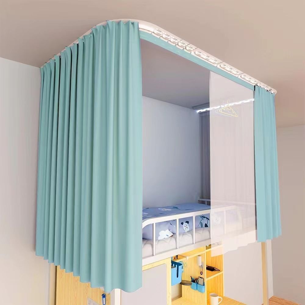 기숙사 두꺼운 상단 침대 슈퍼 차광 천 U자형 이중 트랙 통기성 전체 침대 커튼 불투명 풀 세트