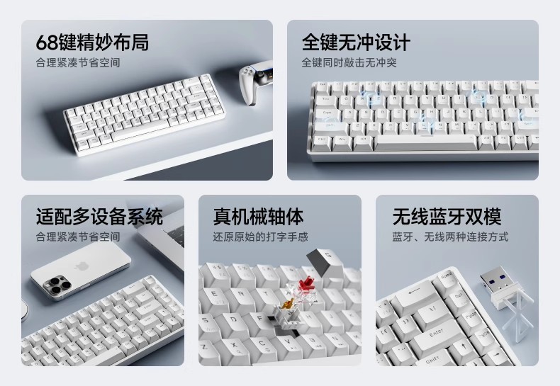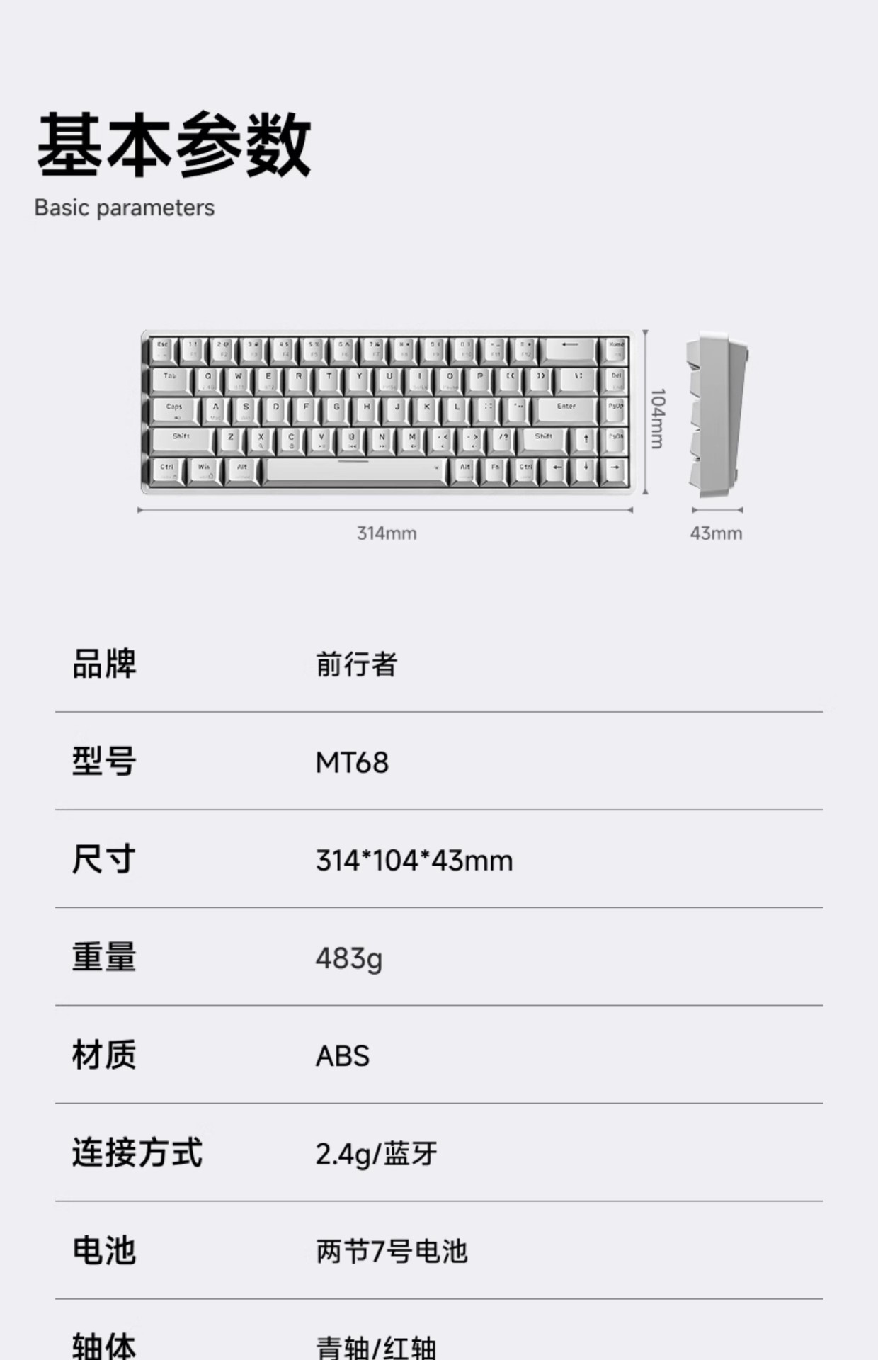 Forerunner MT68 무선 블루투스 기계식 키보드 68키 소녀 사무실 소형 태블릿 휴대용스토어 가기