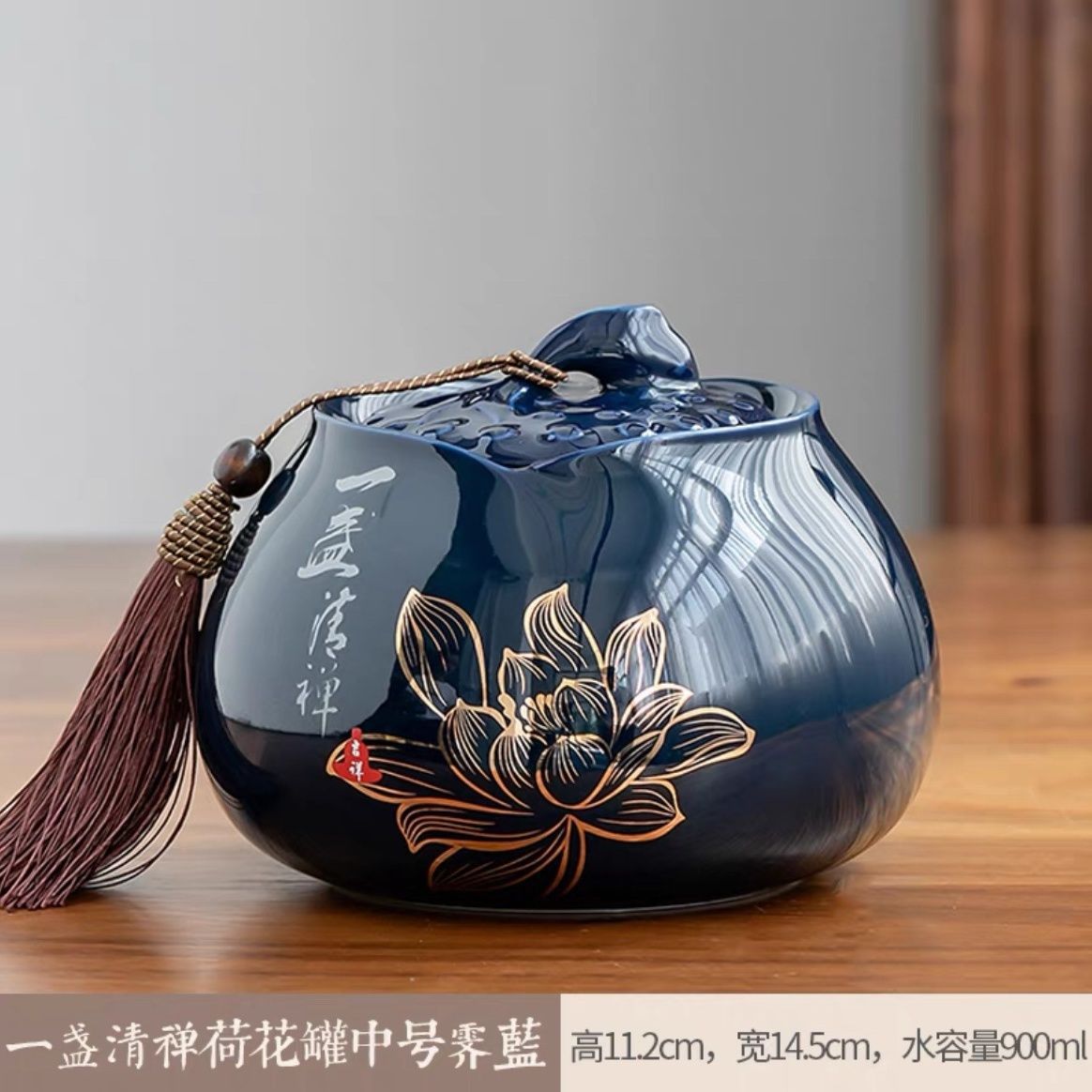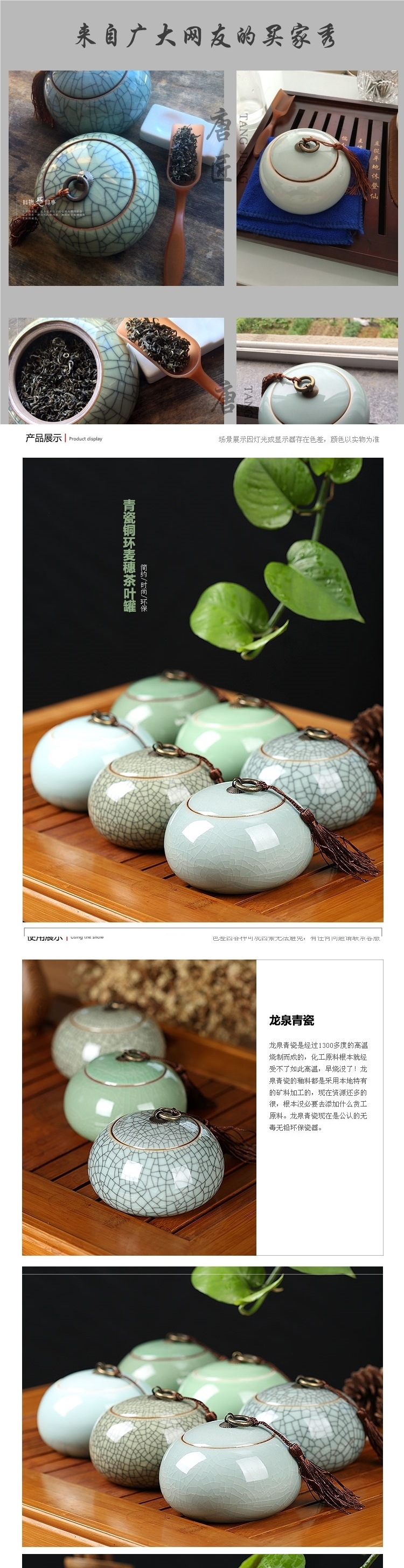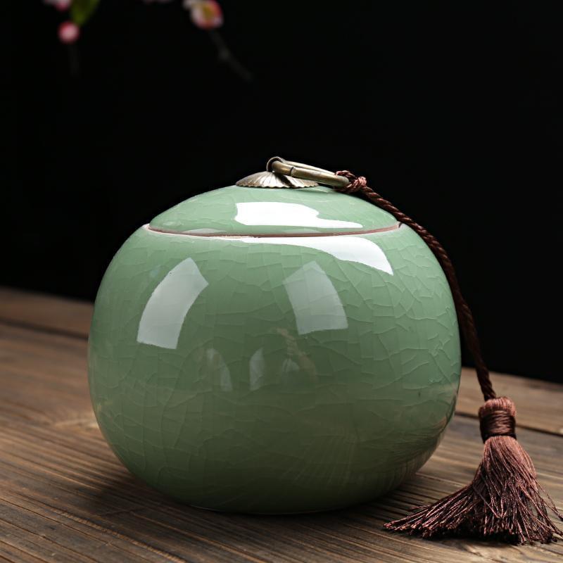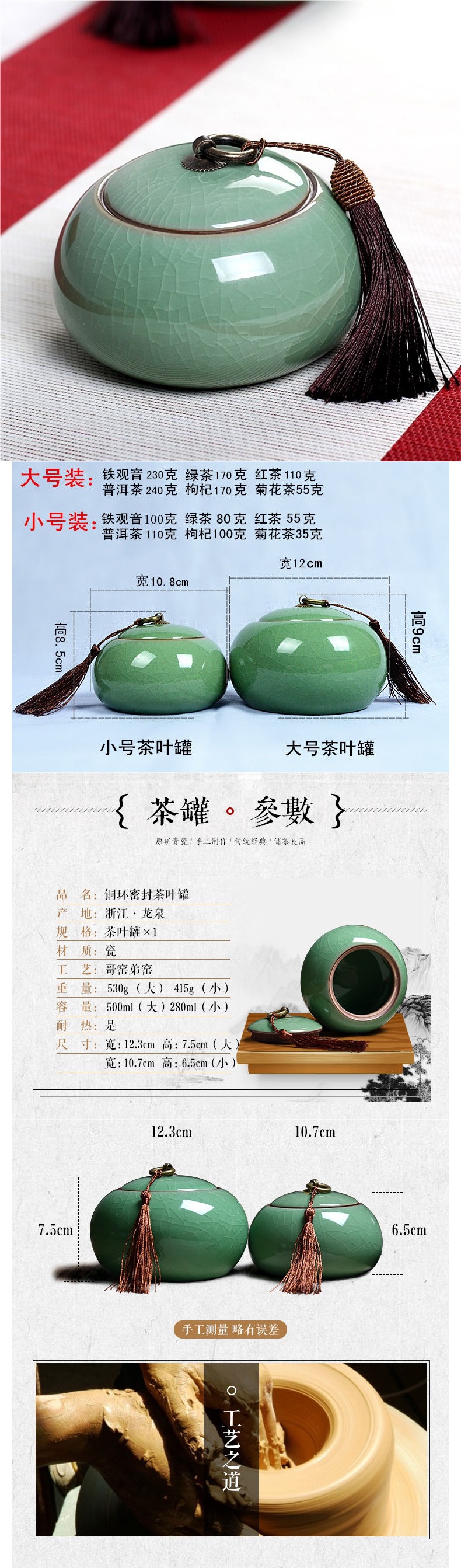 Longquan 수제 청자 차 항아리 대형 저장 항아리 세라믹 차 세트 휴대용 푸에르 차 밀봉 항아리 대형 선물스토어 가기