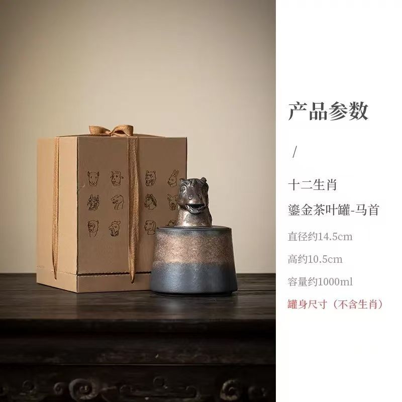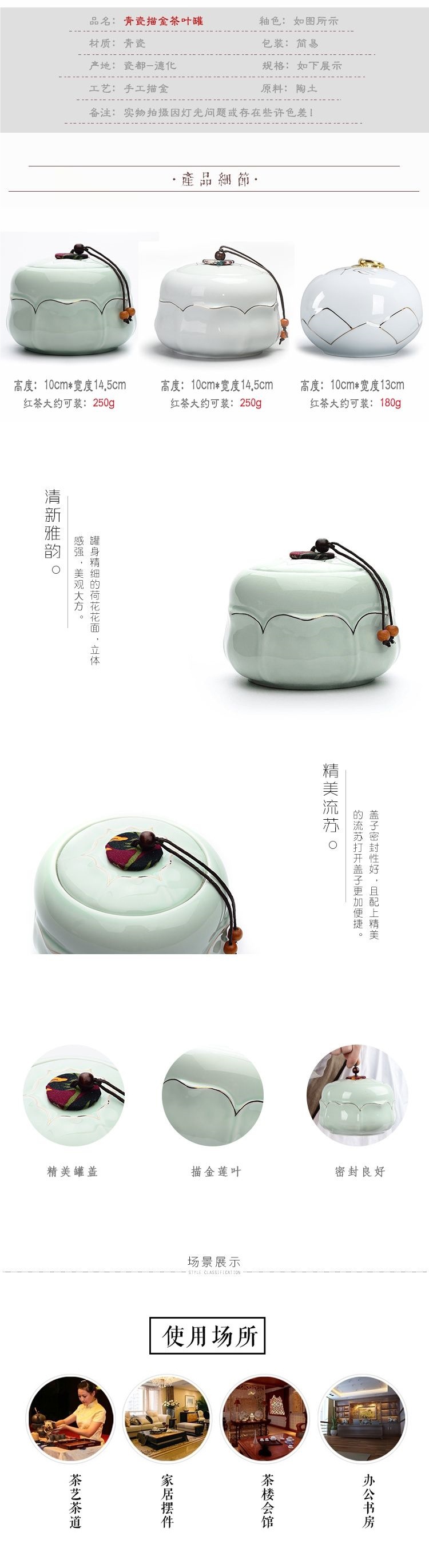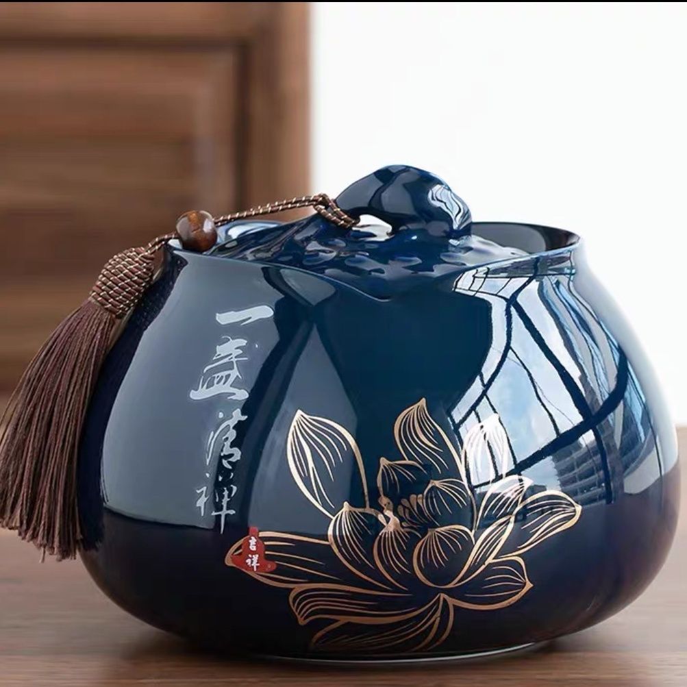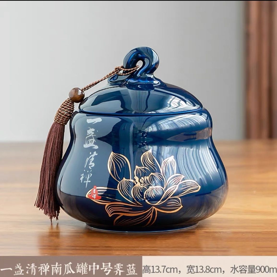 Longquan 수제 청자 차 항아리 대형 저장 항아리 세라믹 차 세트 휴대용 푸에르 차 밀봉 항아리 대형 선물스토어 가기