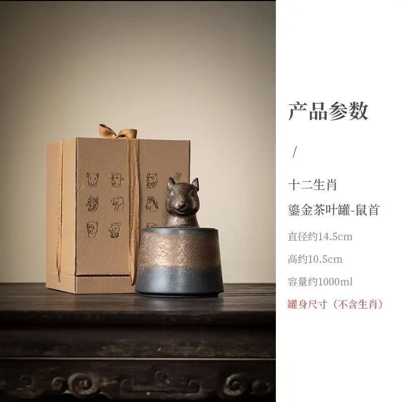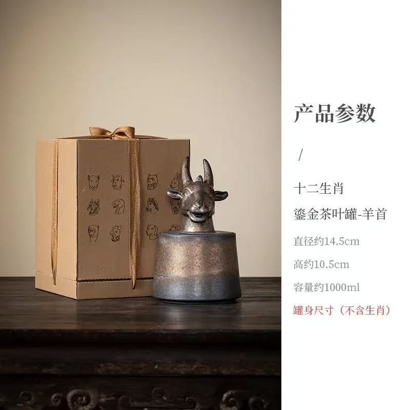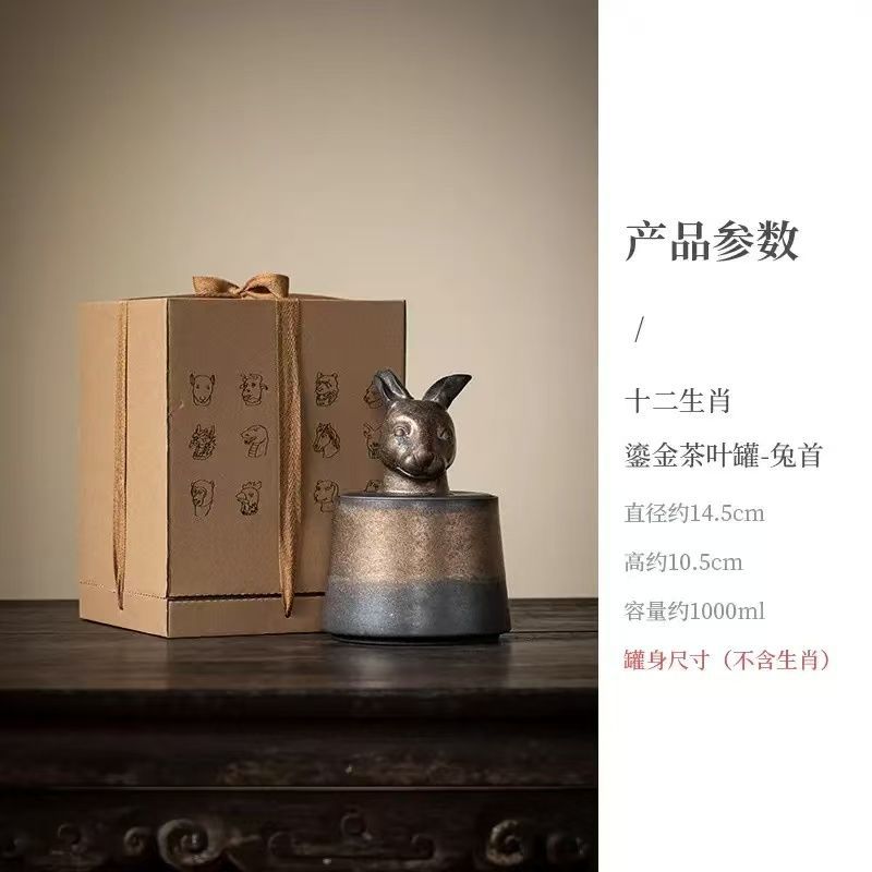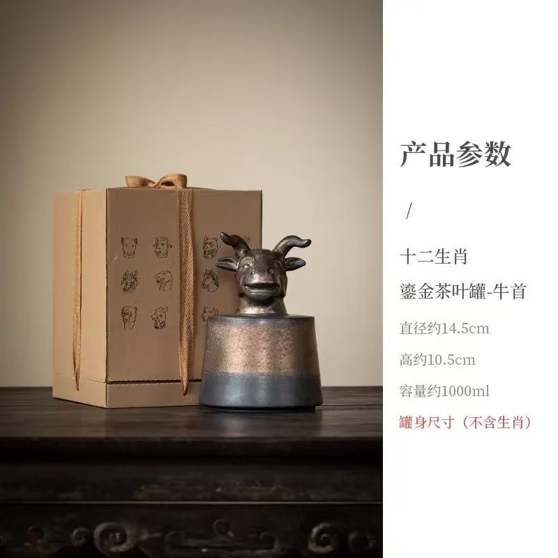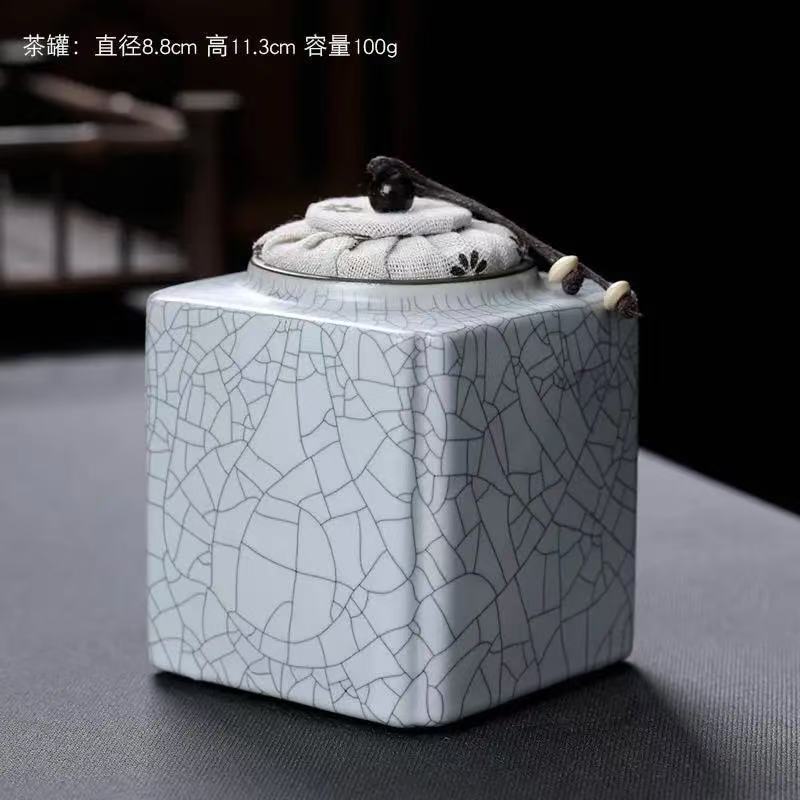 • Yuebai Ru Kiln 차 캔 사각형 캔 (간단한 포장)