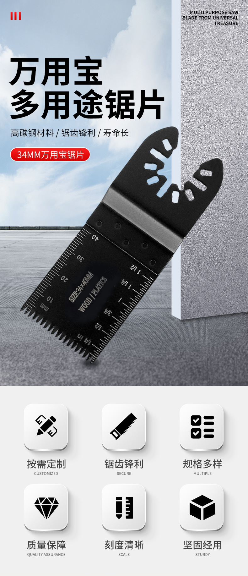 고탄소강 만능 톱날 34×90mm 범용 인터페이스 목공 톱 부드러운 금속 절단 및 홈파기 진동 핸드쏘스토어 가기
