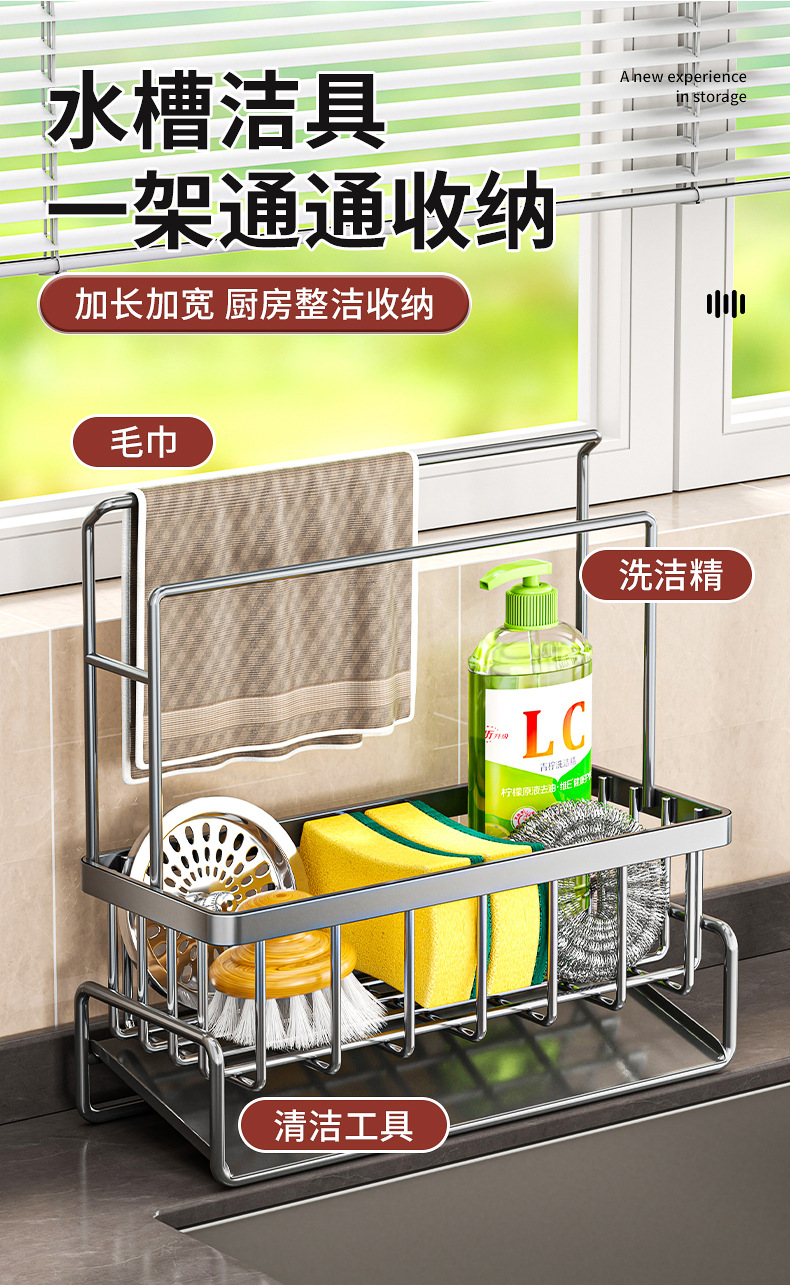 跨境厨房置物架抹布架水槽沥水架海绵架洗碗布收纳盒浴室整理用品