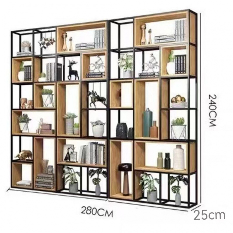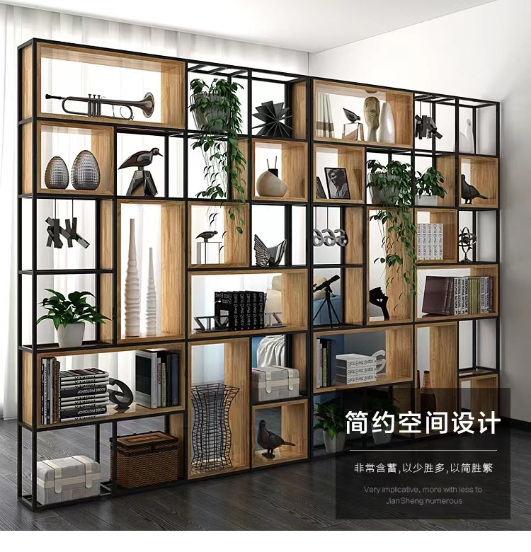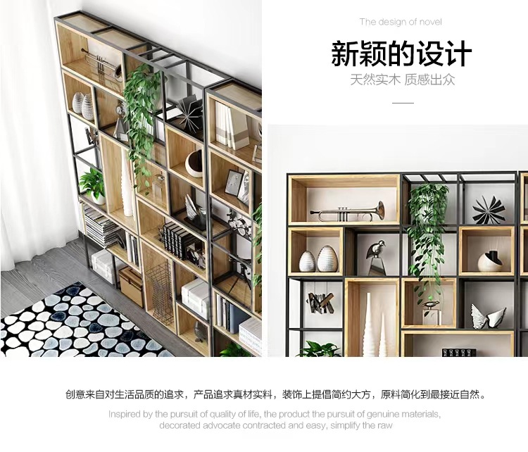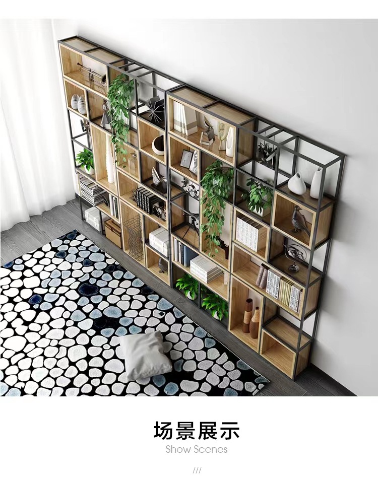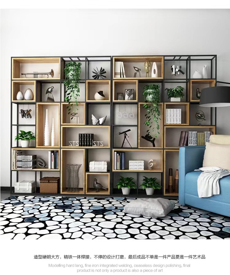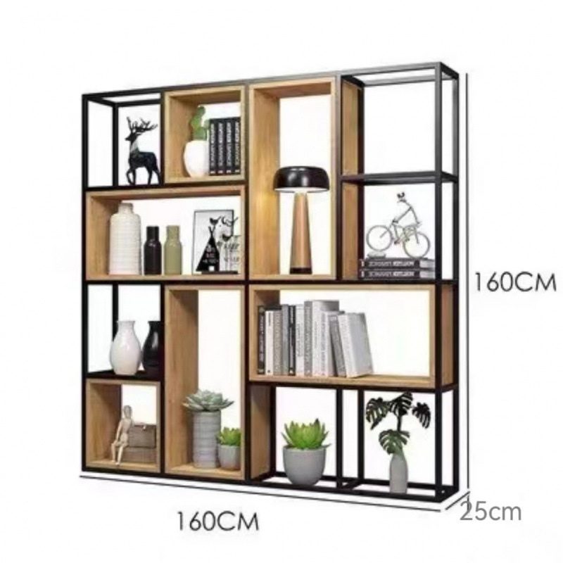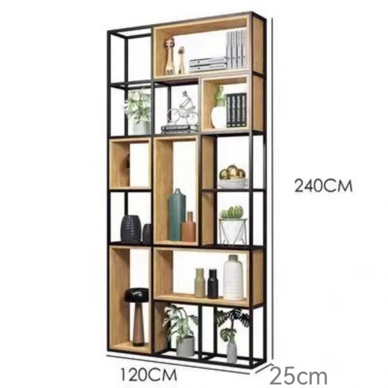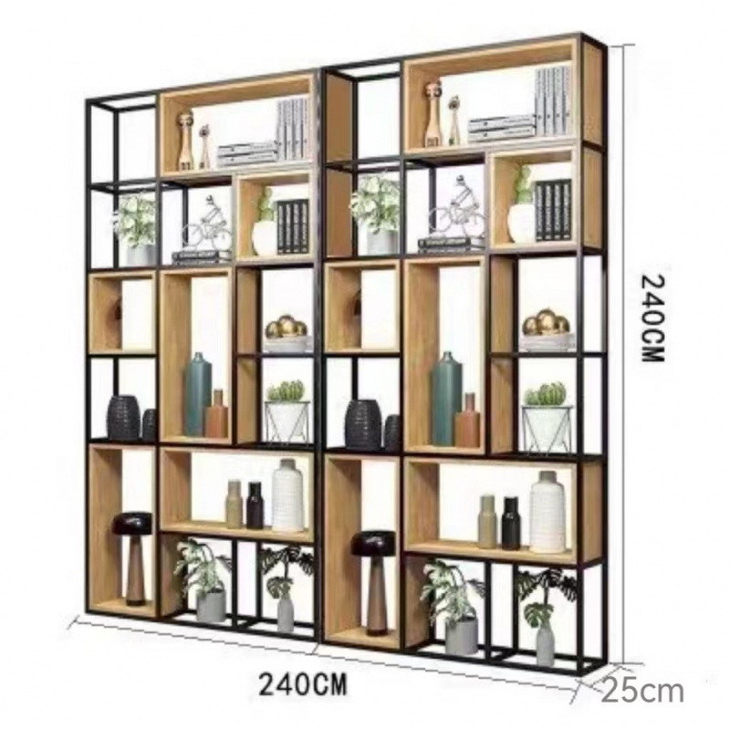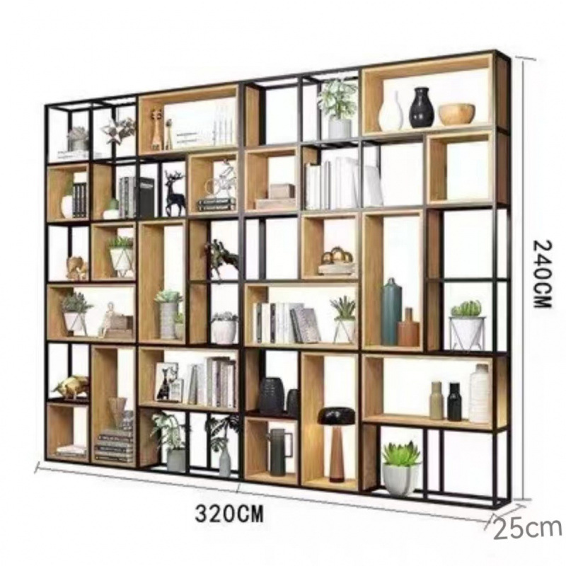 철제 선반 선반 사무실 스크린 현대 단단한 나무 책장 바닥 디스플레이 선반 산업 스타일 선반