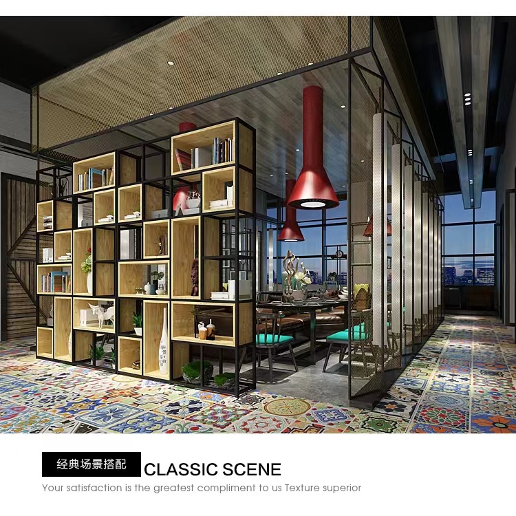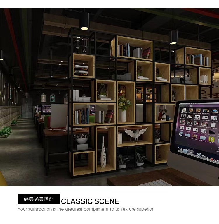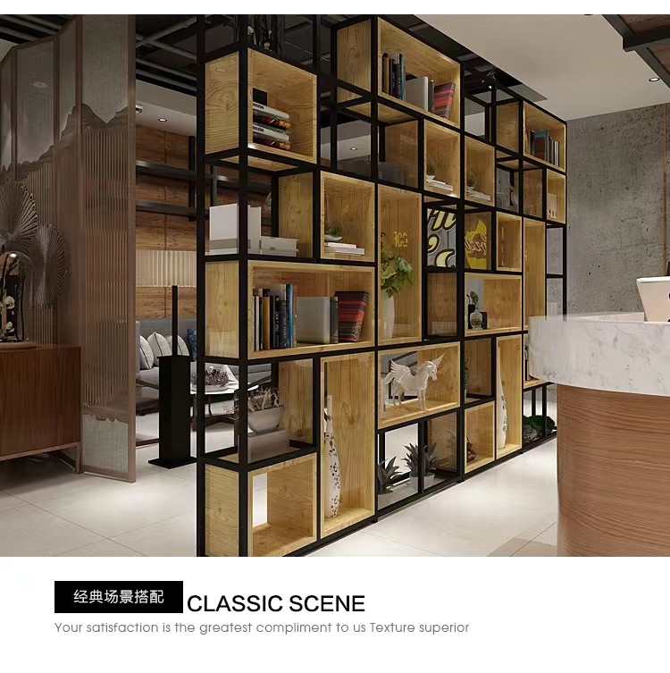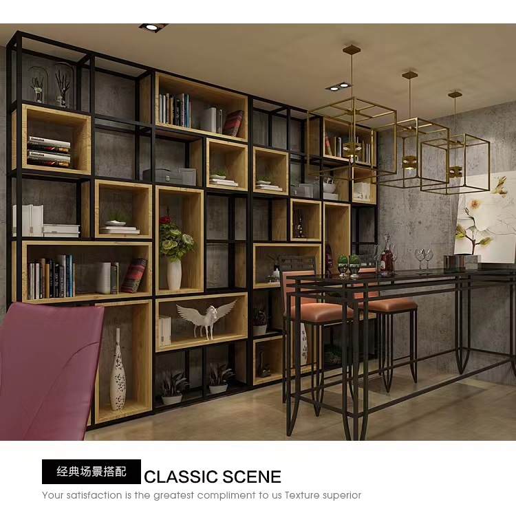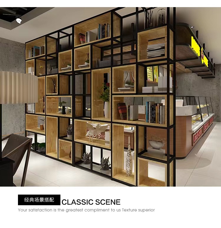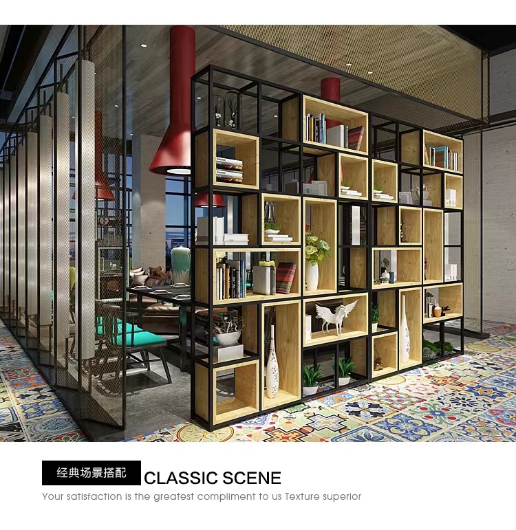 철제 선반 선반 사무실 스크린 현대 단단한 나무 책장 바닥 디스플레이 선반 산업 스타일 선반스토어 가기