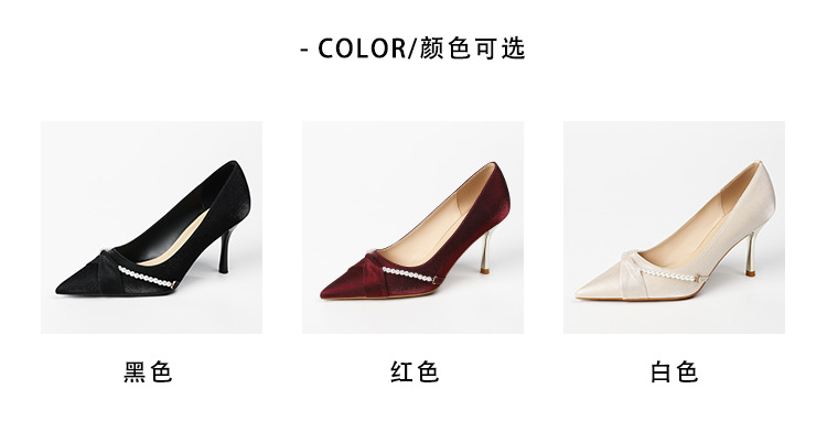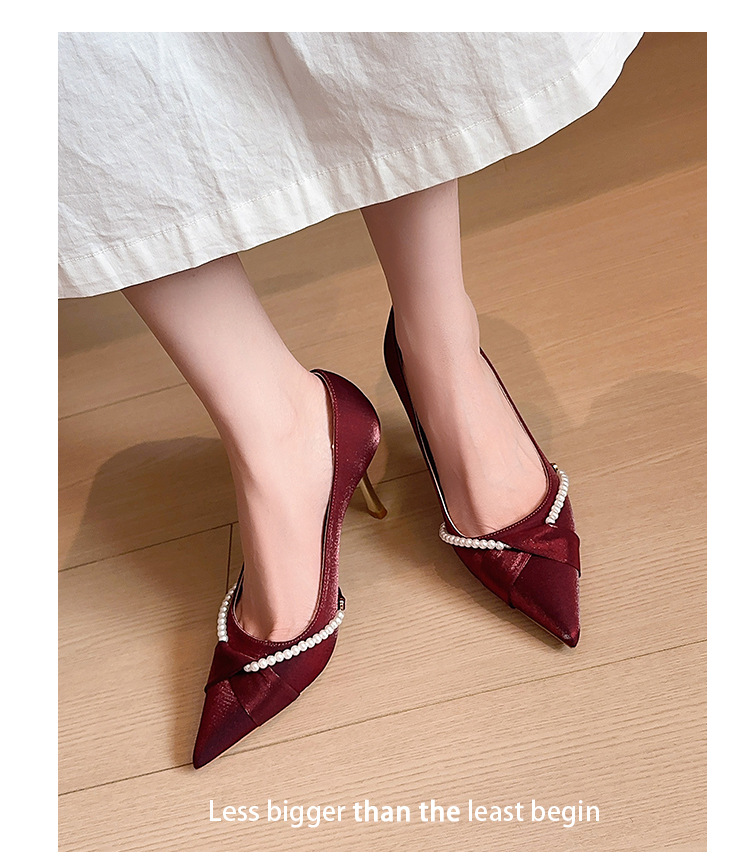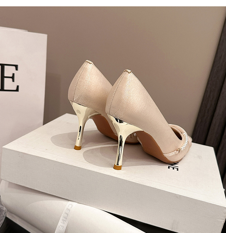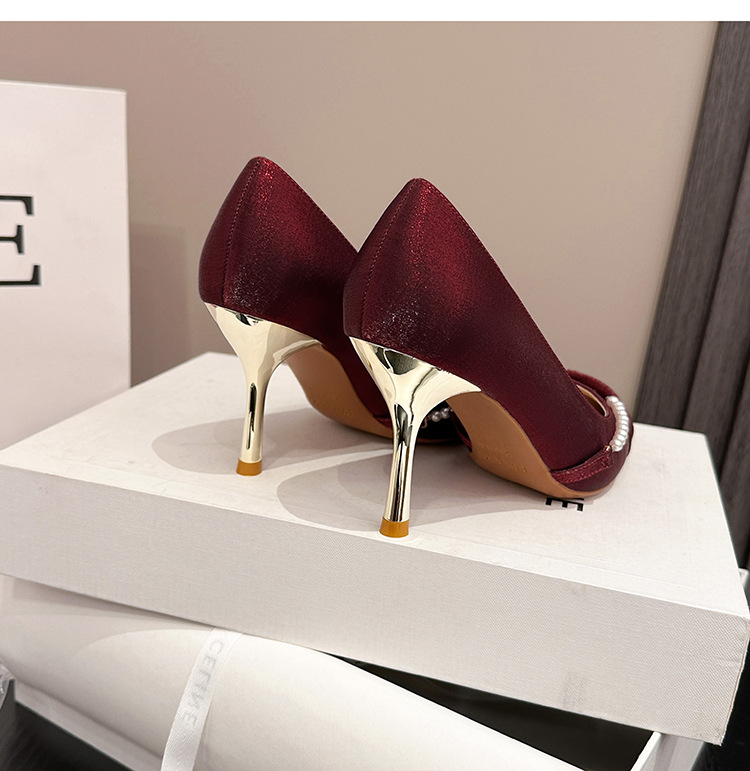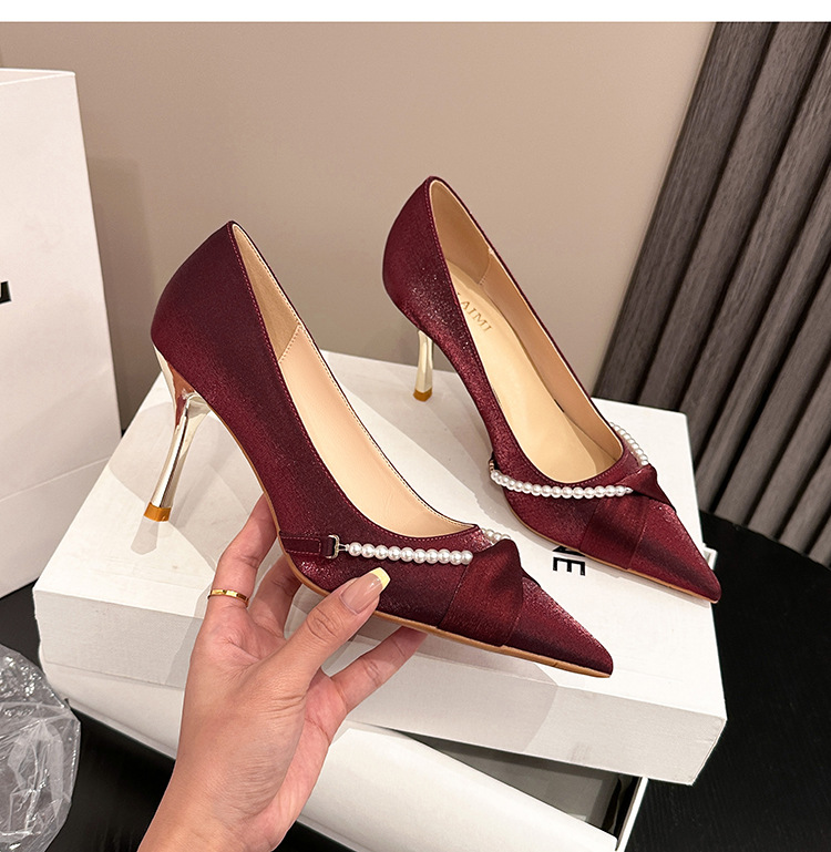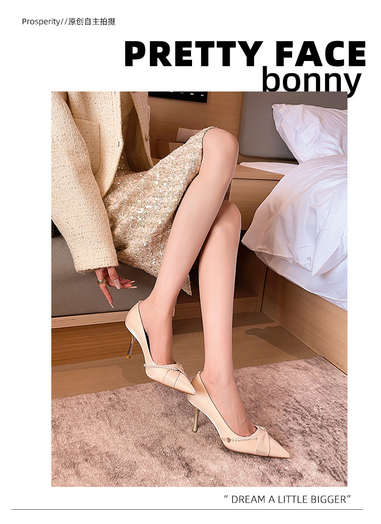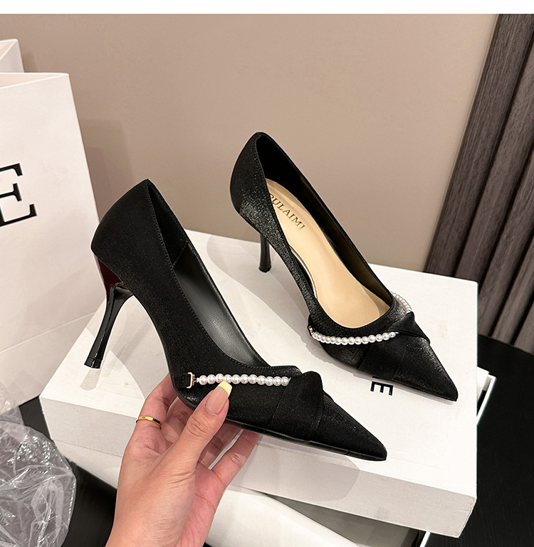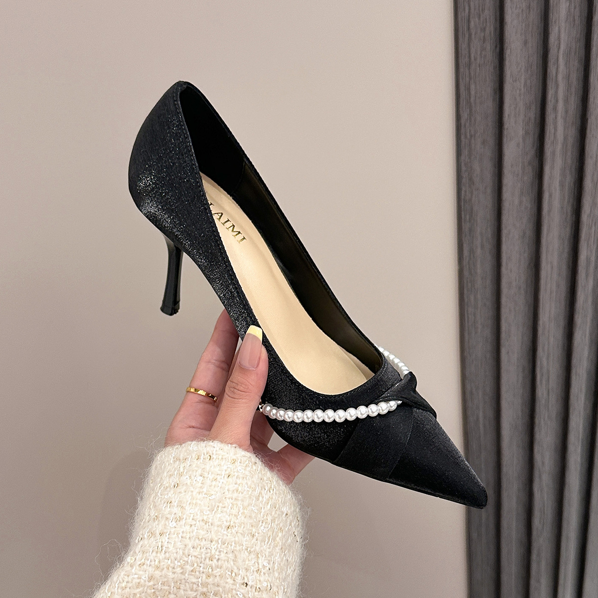 2025 가을 여성용 프렌치 하이힐, 진주 체인, 뾰족한 발가락, 얇은 굽 디자인, 여성용 틈새 신발, 더 두껍고 넓어짐